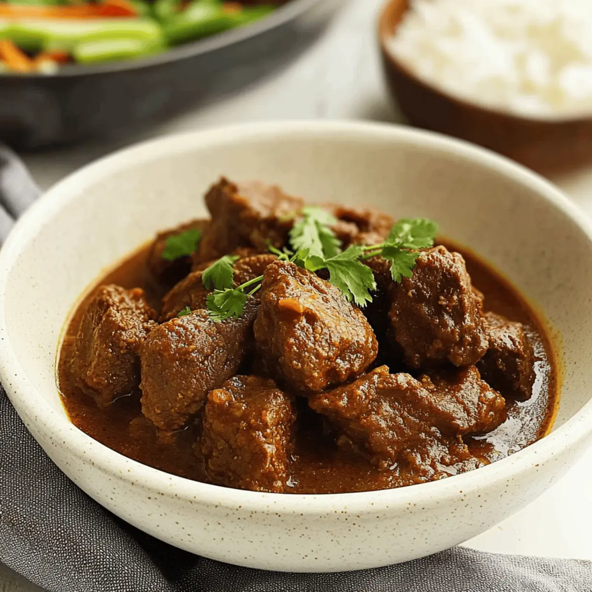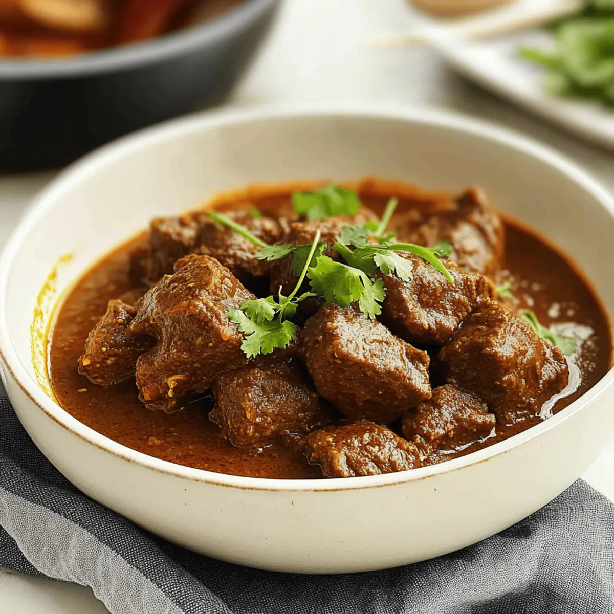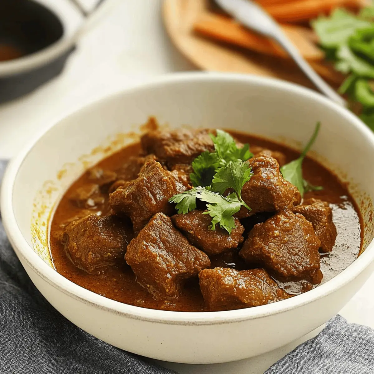These Indian Beef Curry preparations are a lifesaver for busy cooks looking to save time during hectic weekdays! You can marinate the beef with spices up to 24 hours in advance; simply cover it and refrigerate, allowing the flavors to deepen beautifully. Additionally, the curry itself can be fully cooked and stored in the refrigerator for up to 3 days. To maintain its quality, ensure it’s cooled down completely before transferring it to an airtight container. When you’re ready to serve, just gently reheat the curry on the stove, adding a splash of water if needed, and garnish with fresh coriander. This method not only delivers delicious, home-cooked comfort but also means you’ll have your Indian Beef Curry ready with minimal effort!