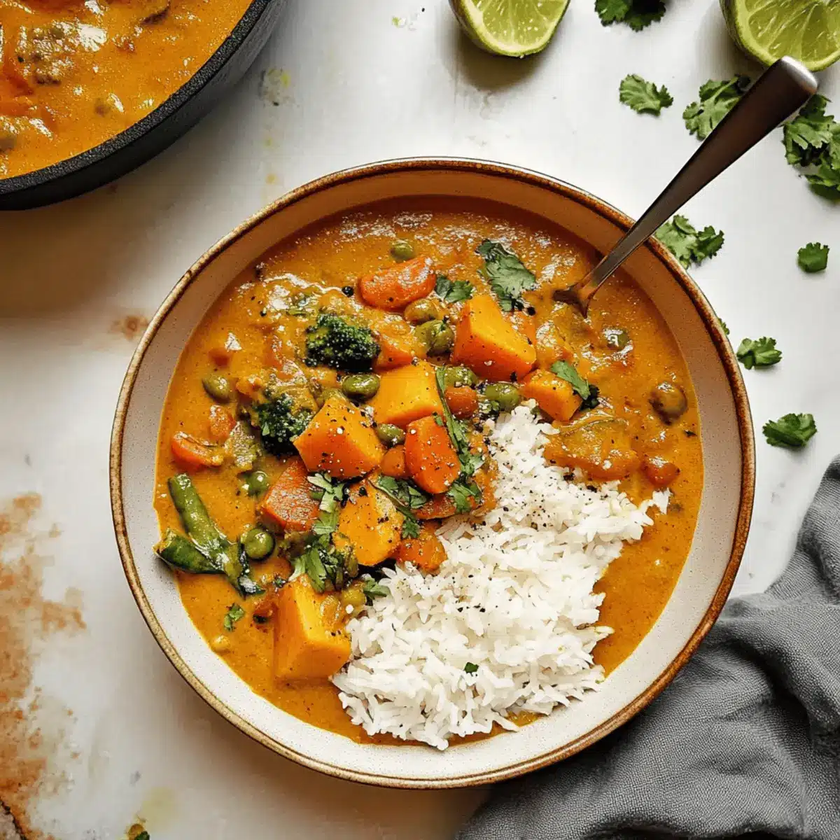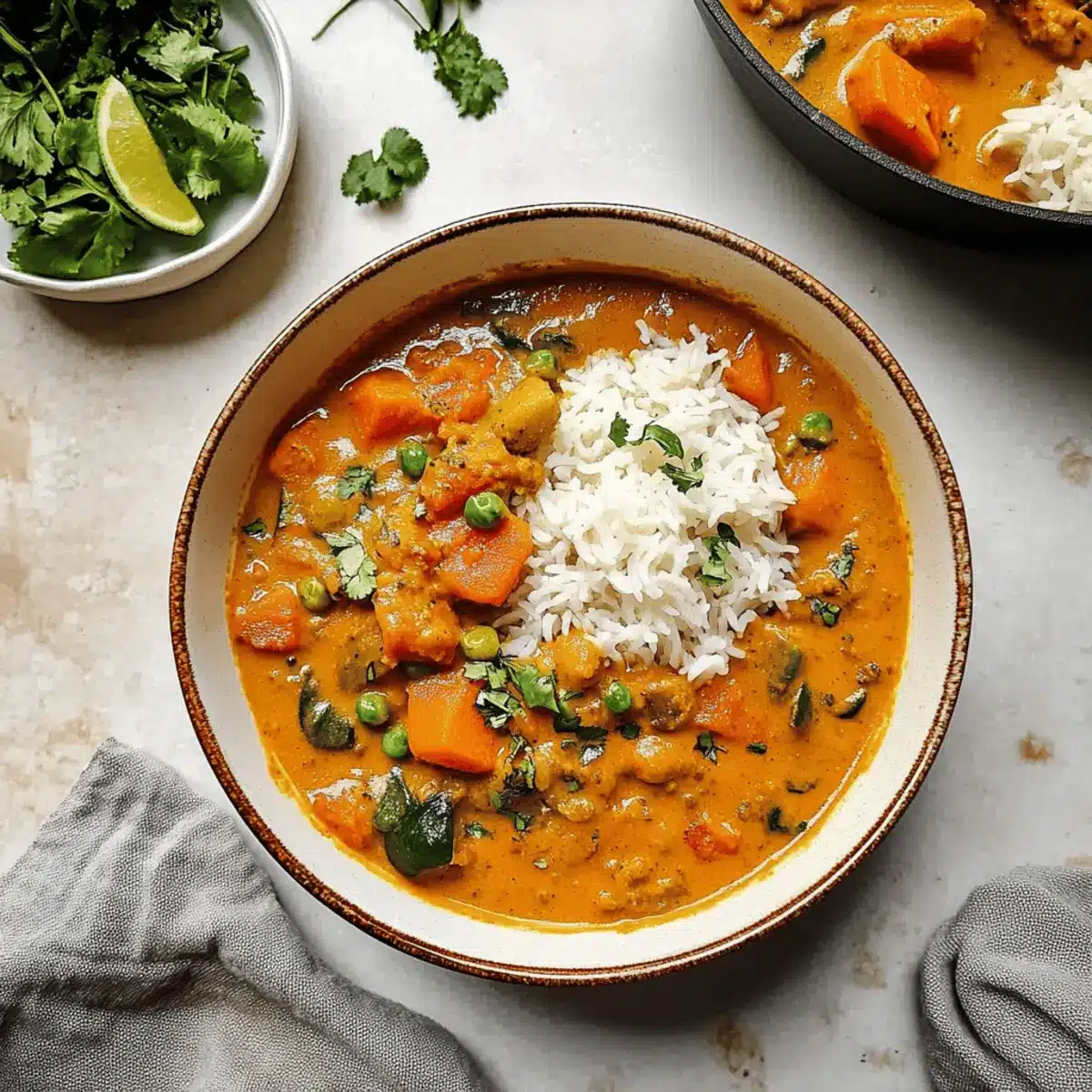 Simplicity makes this dish a breeze to whip up, with minimal prep and a one-pot method that saves time on cleanup. Creamy coconut milk melds perfectly with vibrant veggies, creating a comforting sauce that feels like a warm hug after a long day. Versatility shines through; swap in your favorite seasonal vegetables or vary the spices to match your taste. Whether served alongside fragrant basmati rice or warm naan, it’s a crowd-pleaser that invites seconds. Plus, for those who love exploring flavors, this recipe is reminiscent of classic Indian dishes like my Indian Beef Curry but with a delightful vegan twist!