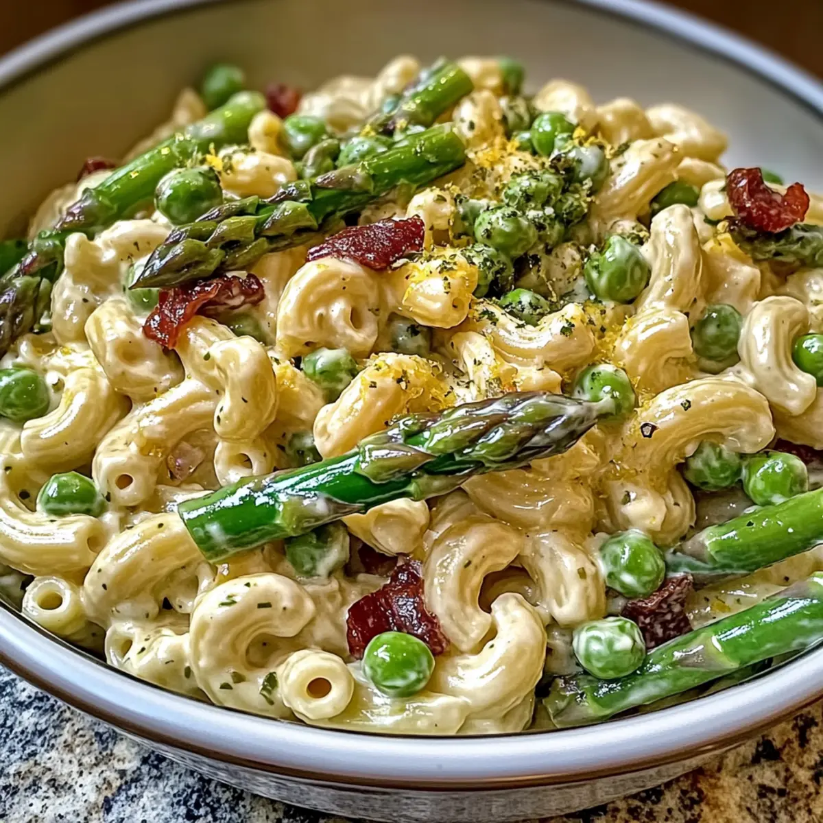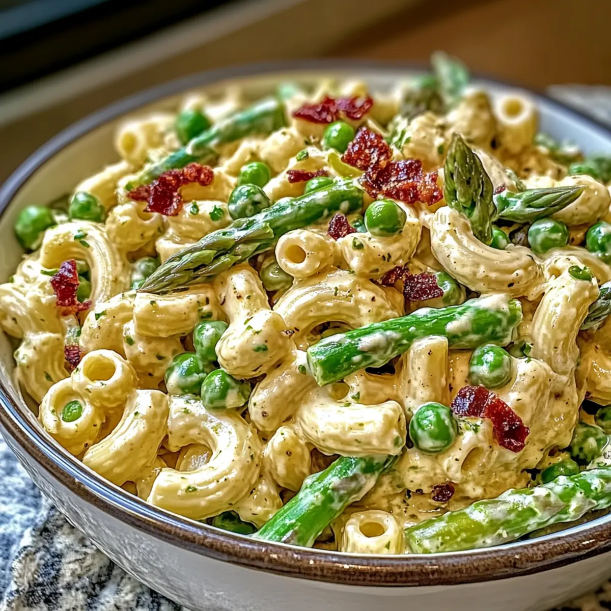 A vibrant and quick Lemon-Dijon Asparagus and Pea Macaroni Salad that's both satisfying and healthy, perfect for any gathering.