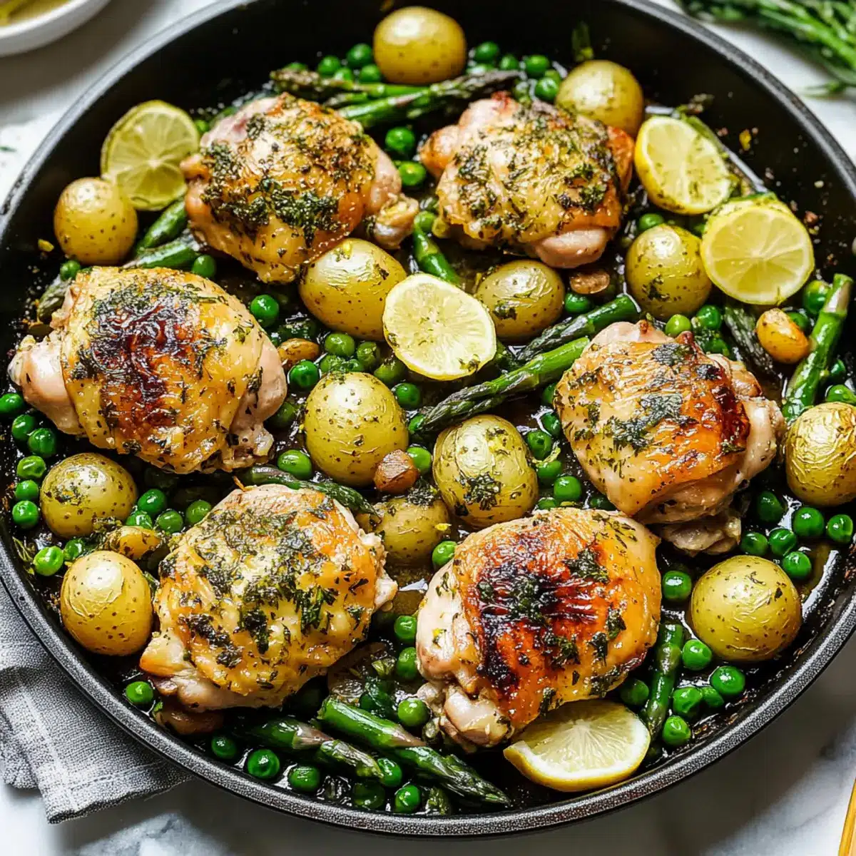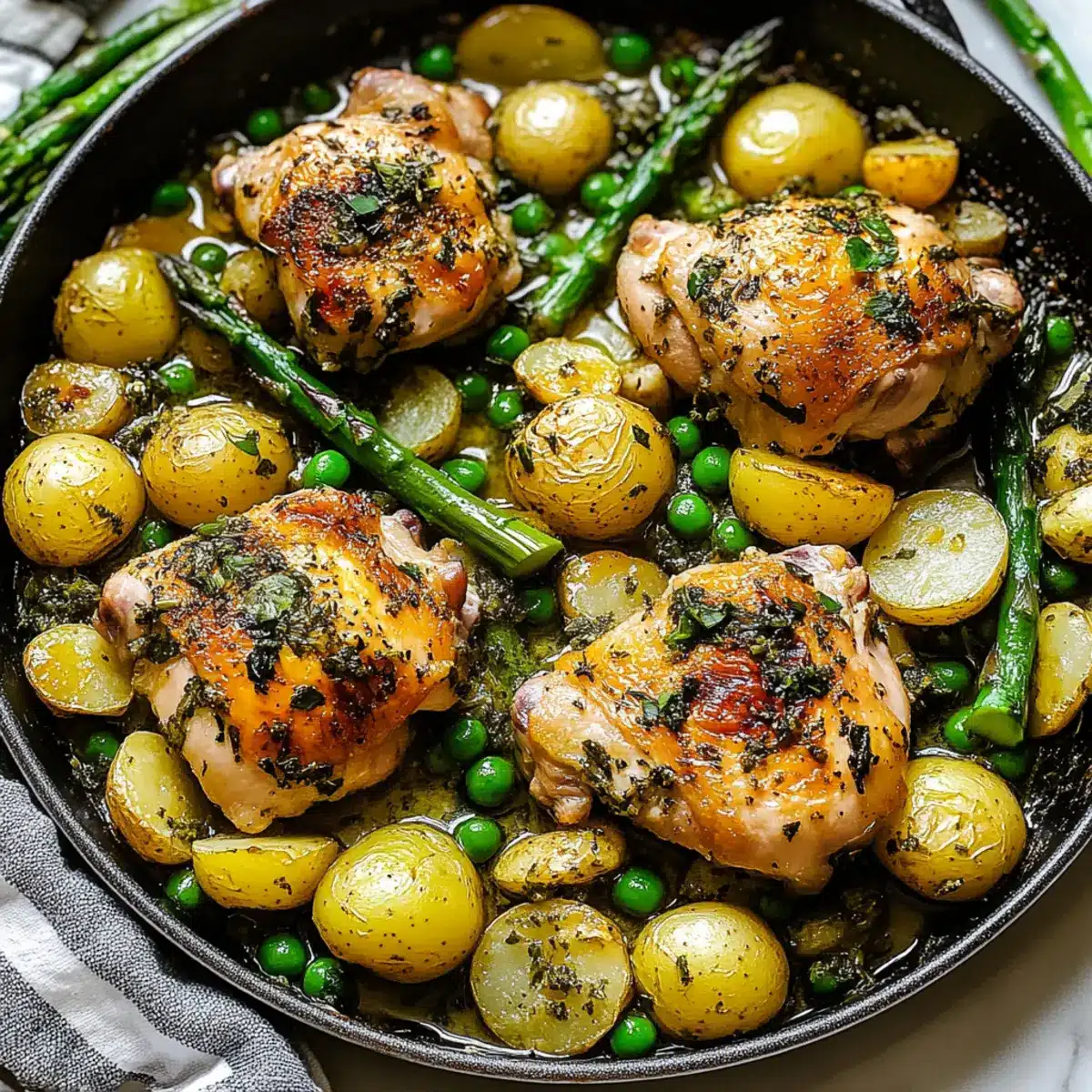 Absolutely! When choosing ingredients, look for chicken thighs that are plump and have a nice yellowish tint to the skin. For baby potatoes, select ones that are firm without any dark spots or blemishes. Fresh asparagus should be bright green with firm stems, and for sweet peas, vibrant green pods indicate freshness. This attention to detail ensures every bite is bursting with flavor!