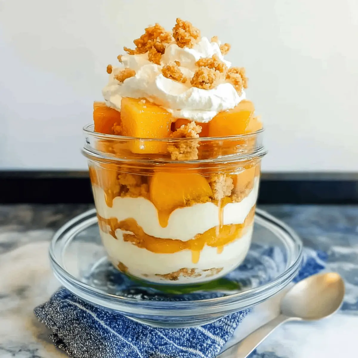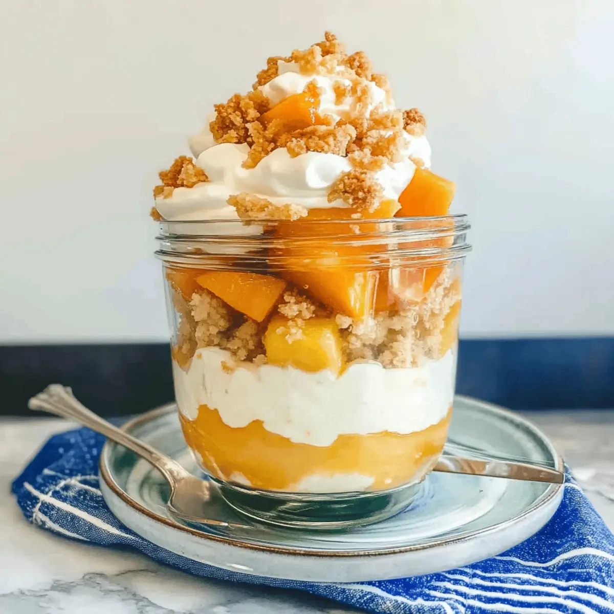 Layer Carefully: When assembling, be gentle to maintain the distinct layers, ensuring each spoonful showcases the creamy pudding, peach filling, and crumble with delightful contrasts.