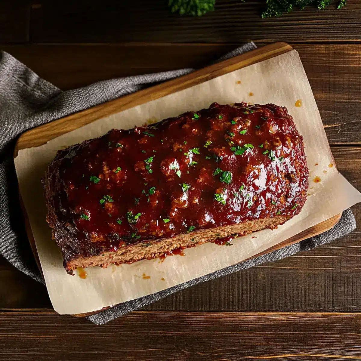 Spread a thin layer of ketchup or barbecue sauce evenly over the top of your shaped meatloaf. This topping not only adds flavor but creates a lovely glaze as it bakes. Use a spatula to smooth it out, covering the top fully for the best visual appeal.
