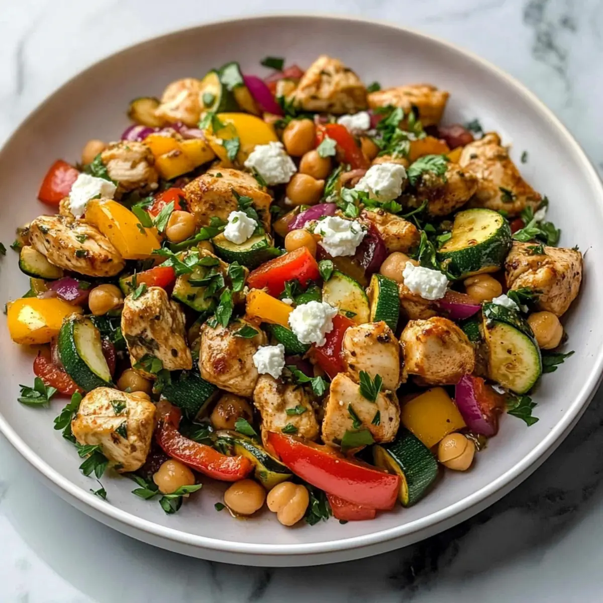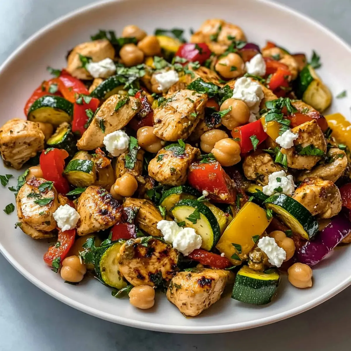 Very! To create a vegetarian version of this Mediterranean Chicken Stir-Fry, simply replace the chicken with firm tofu or tempeh and increase the amount of chickpeas for extra protein. Marinate the tofu before sautéing to absorb flavor, and follow the same cooking process for a delightful plant-based meal!