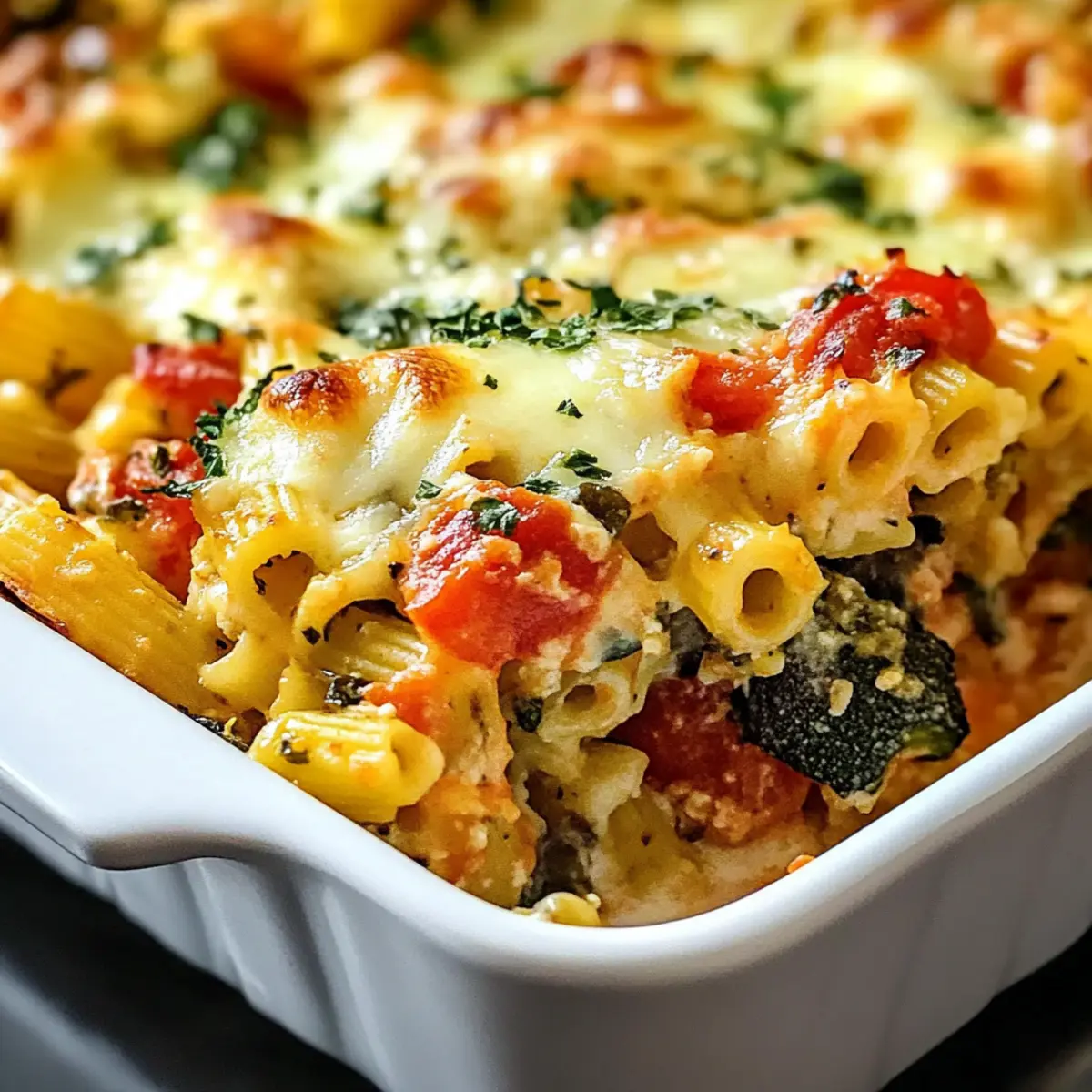 Easy Preparation: This Mediterranean Vegetable Pasta Bake requires minimal effort, making it perfect for busy nights. Flavor Explosion: Each bite bursts with the rich, roasted flavors of fresh vegetables, paired with creamy cheeses and zesty pesto. Versatile Ingredients: Customize your dish with whatever seasonal veggies you have on hand for endless variations! Family-Friendly: It’s a guaranteed crowd-pleaser, ideal for picky eaters of all ages. Plus, you can easily make it ahead of time, leaving you more time to relax. For a delicious side, consider pairing it with a crisp green salad or some warm garlic bread!