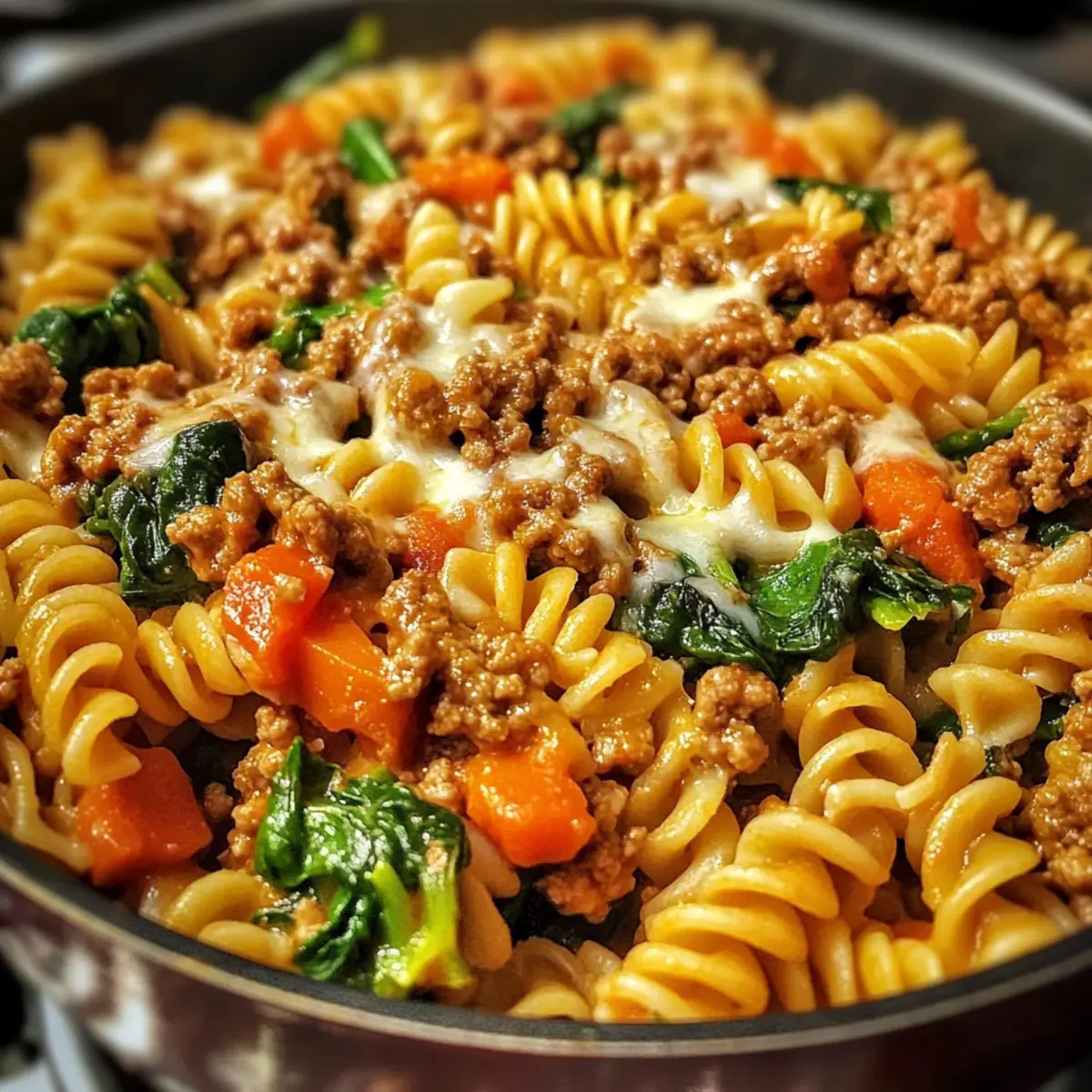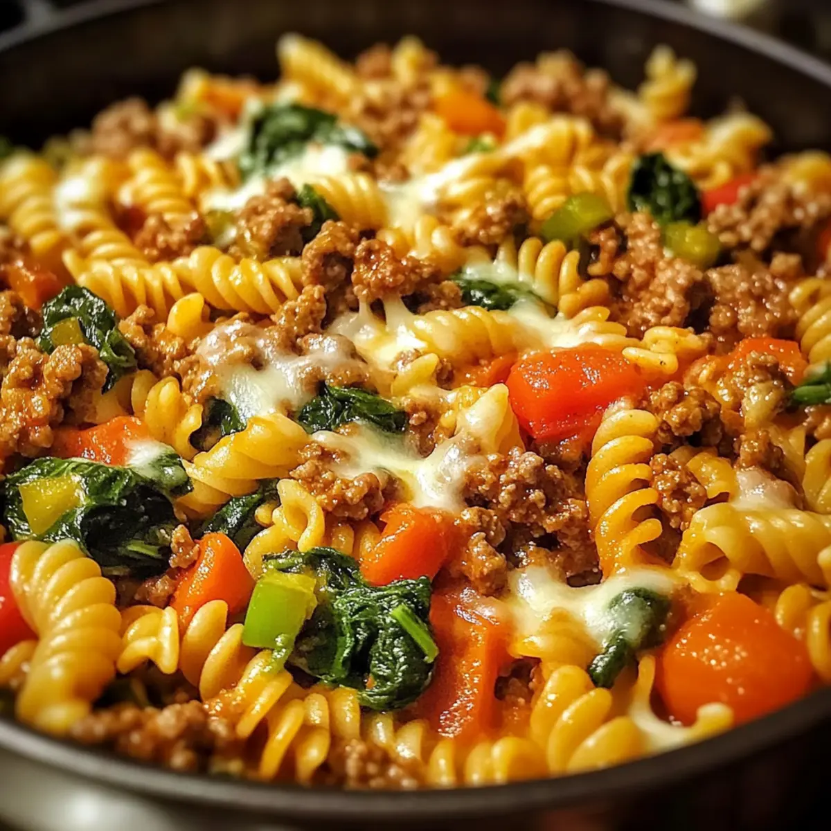 Once the pasta reaches the perfect doneness, stir in the fresh spinach. Cover the pot again and let it sit for about 5 minutes off the heat. This resting time allows the dish to thicken slightly, blending flavors together even further, bringing your One-Pot Ground Beef Veggie Pasta into perfect harmony.