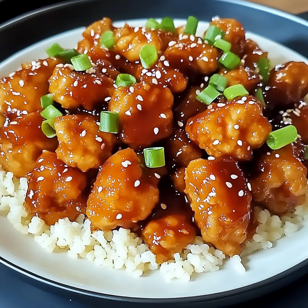 Sesame Seed Broccoli: Lightly steamed broccoli sprinkled with sesame seeds provides a nutritious, colorful addition that pairs beautifully with the chicken’s sweet sauce.