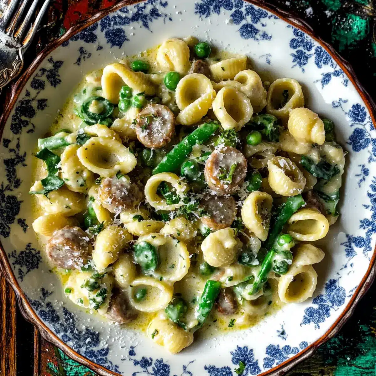 Spring has arrived, and with it, a vibrant celebration of fresh flavors waiting to burst onto our plates! This Creamy Orecchiette with Chicken Sausage & Spring Vegetables is my go-to recipe for welcoming the season’s bounty. Not only does it come together in under 30 minutes, making it perfect for busy weeknights, but it also harmoniously balances rich creaminess with zesty pops of lemon and seasonal veggies that feel revitalizing. The combination of tender orecchiette pasta, flavorful chicken sausage, and a medley of fresh greens ensures every bite is delicious and satisfying—truly a crowd-pleaser! If you’re looking to swap ingredients for a dairy-free version or switch up the sausage, this recipe is adaptable to fit your preferences. Curious about how to make this springtime delight? Let’s dive into the details!