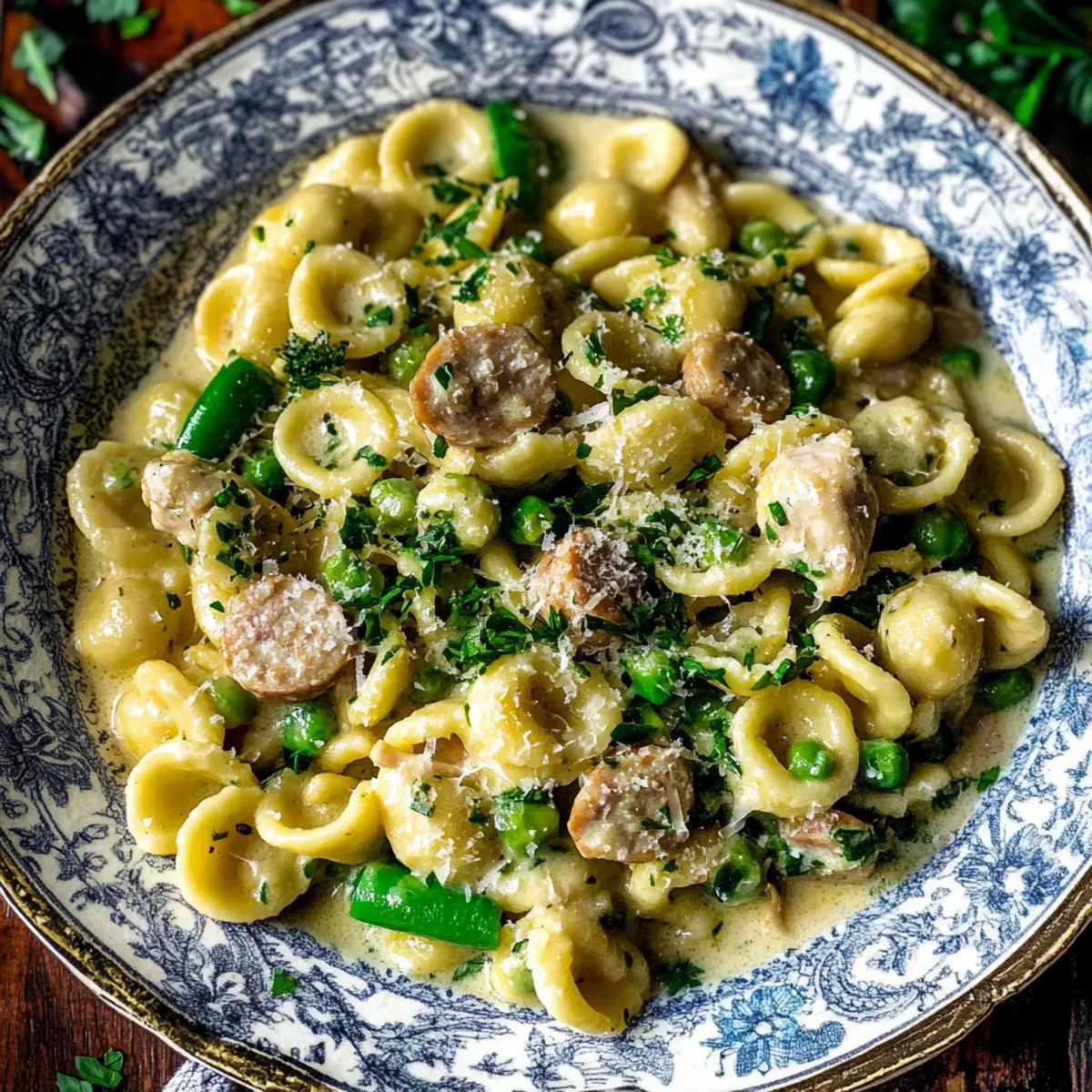 These Creamy Orecchiette with Chicken Sausage & Spring Vegetables are perfect for those busy weekdays where meal prep can save you precious time! You can prepare the sauce up to 3 days in advance by cooking all the components (the sausage, vegetables, and creamy base) and storing them in an airtight container in the refrigerator. To maintain quality, allow the sauce to cool before sealing it tightly. When you’re ready to serve, simply reheat the sauce gently on the stovetop, then cook the orecchiette according to package instructions (minus one minute), combine them with the reheated sauce, and finish with fresh lemon juice, zest, and cheese for a delightful meal that feels freshly made!