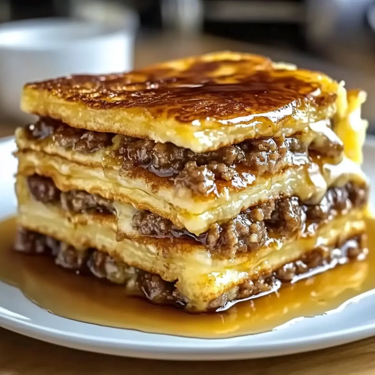 Pancake Sausage Casserole is a delightful mash-up of fluffy pancakes, savory sausage, and gooey cheese, perfect for any meal.