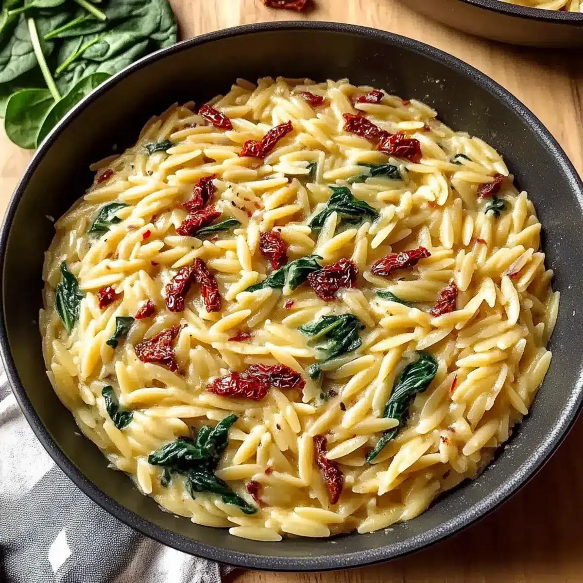 It’s great to be mindful! This Creamy Tuscan Orzo can be easily adjusted for dietary needs. For a vegetarian option, use vegetable broth instead of chicken broth. If you’re concerned about dairy, you can use lactose-free cream and nutritional yeast instead of Parmesan for a cheesy flavor. For those with gluten sensitivities, try using quinoa instead of traditional orzo.