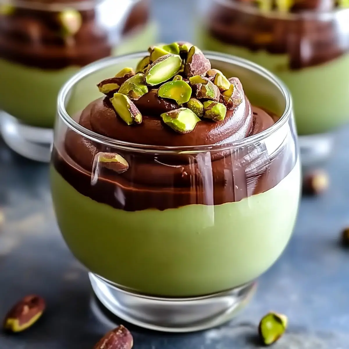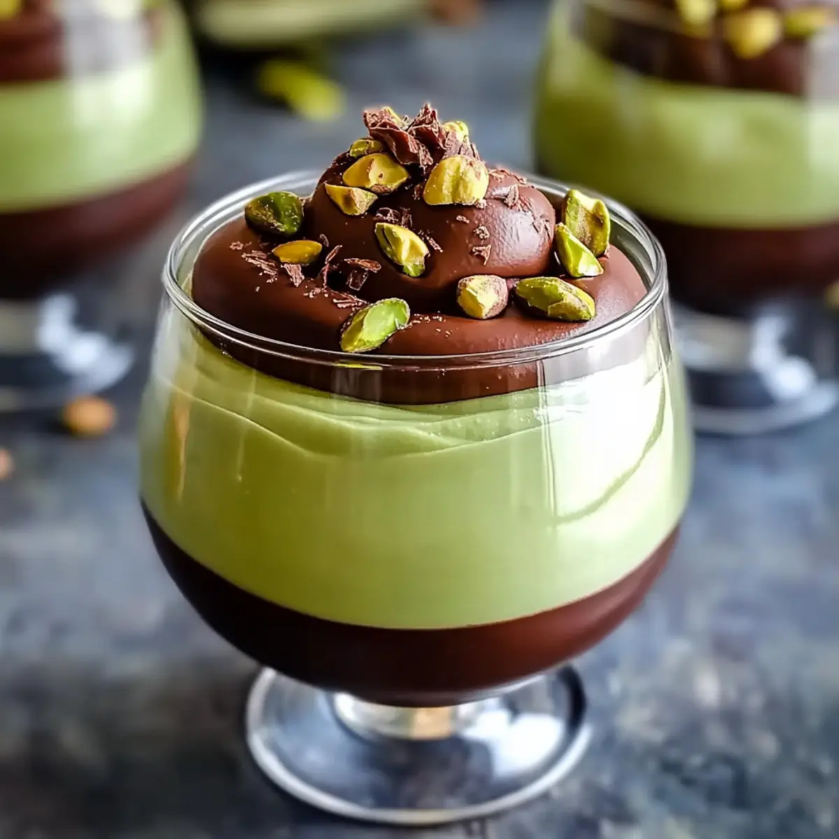 Indulge in Pistachio Mousse with Chocolate Ganache Delight
