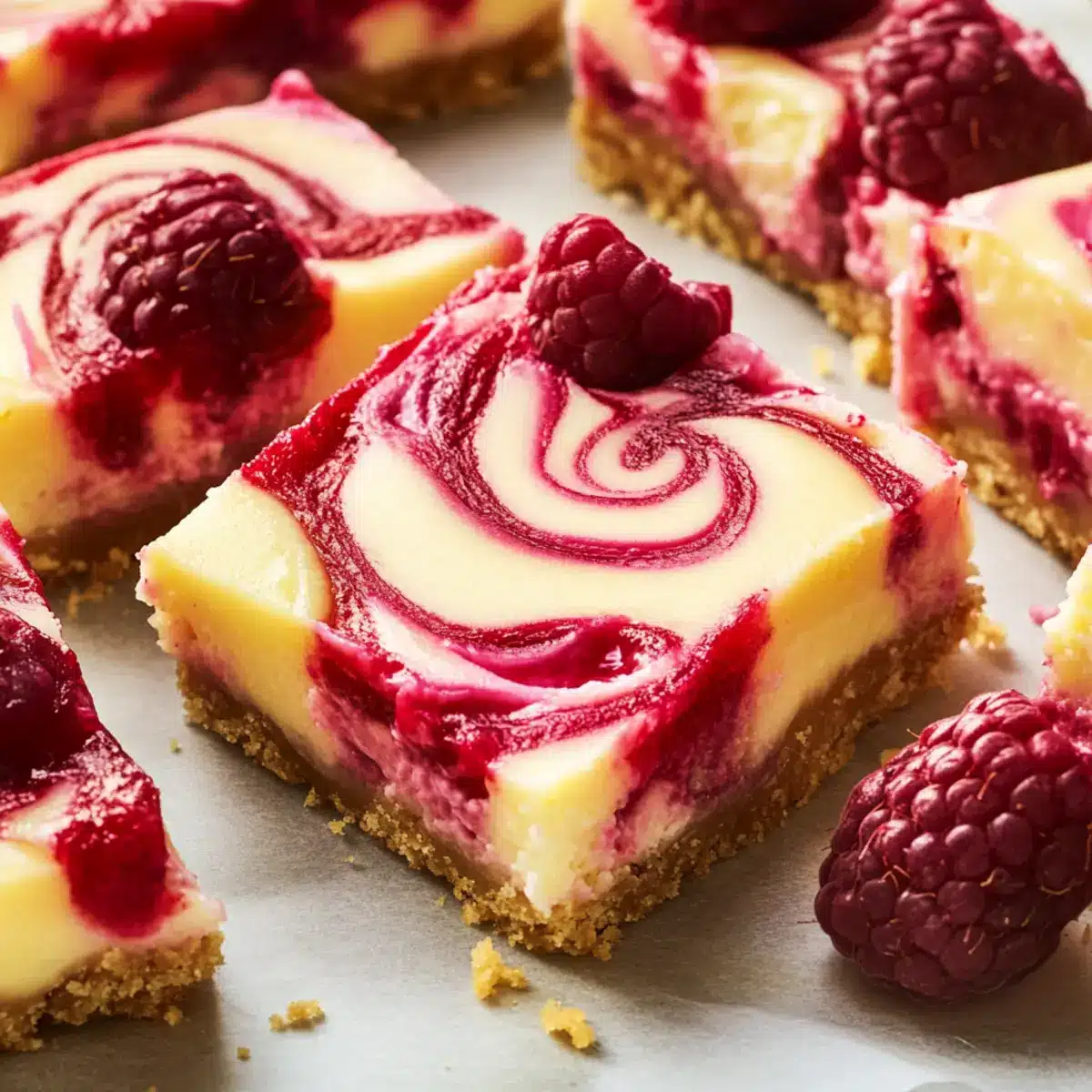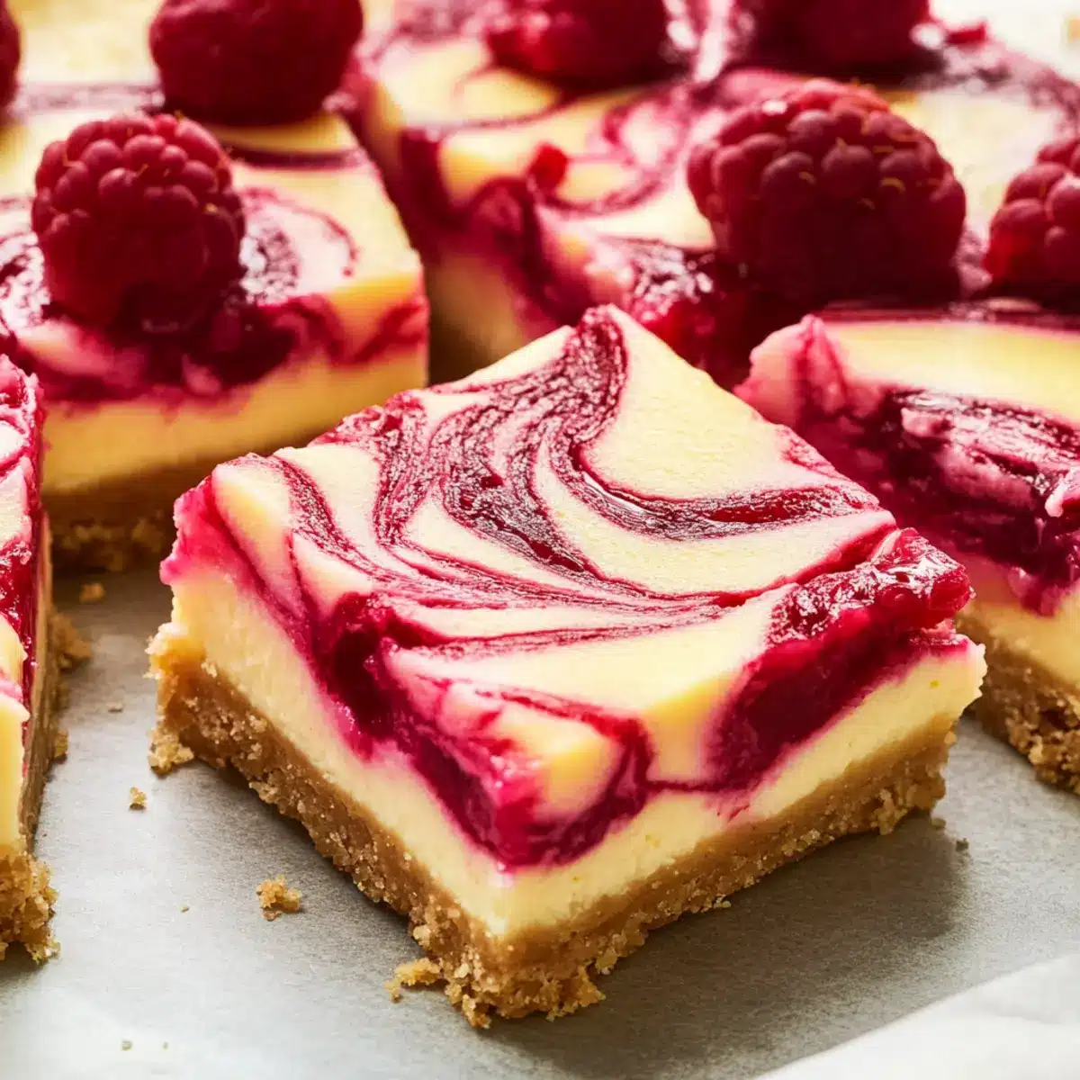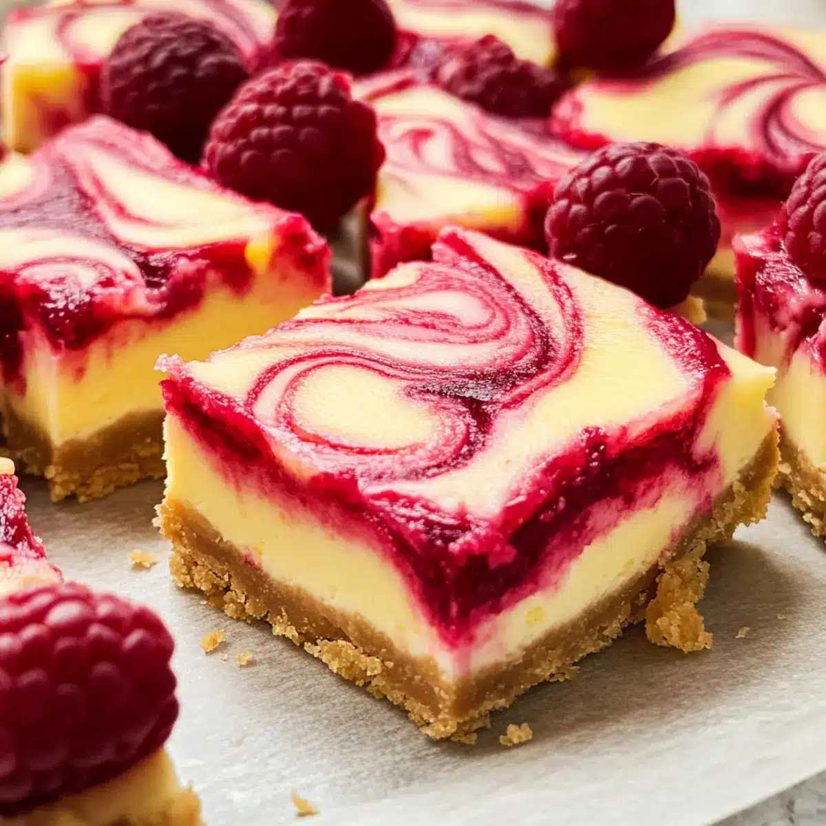 Enjoy Raspberry Lemonade Cheesecake Bars—your ultimate summer treat with a buttery graham cracker crust, zesty lemon cheesecake, and vibrant raspberry swirls.