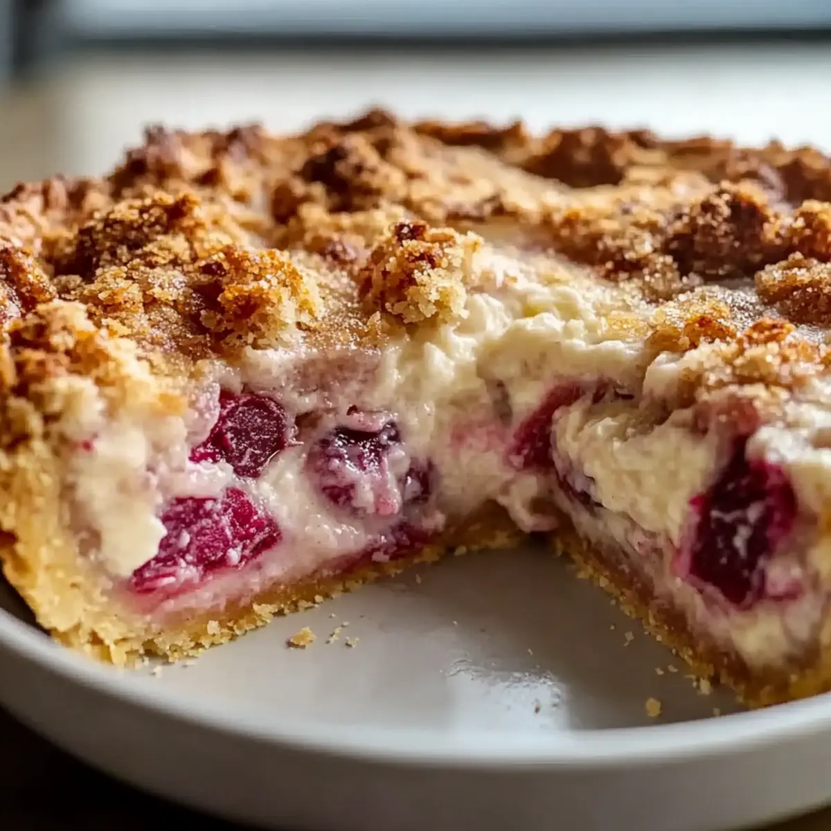 - Evenly sprinkle the crumble topping over the filling.