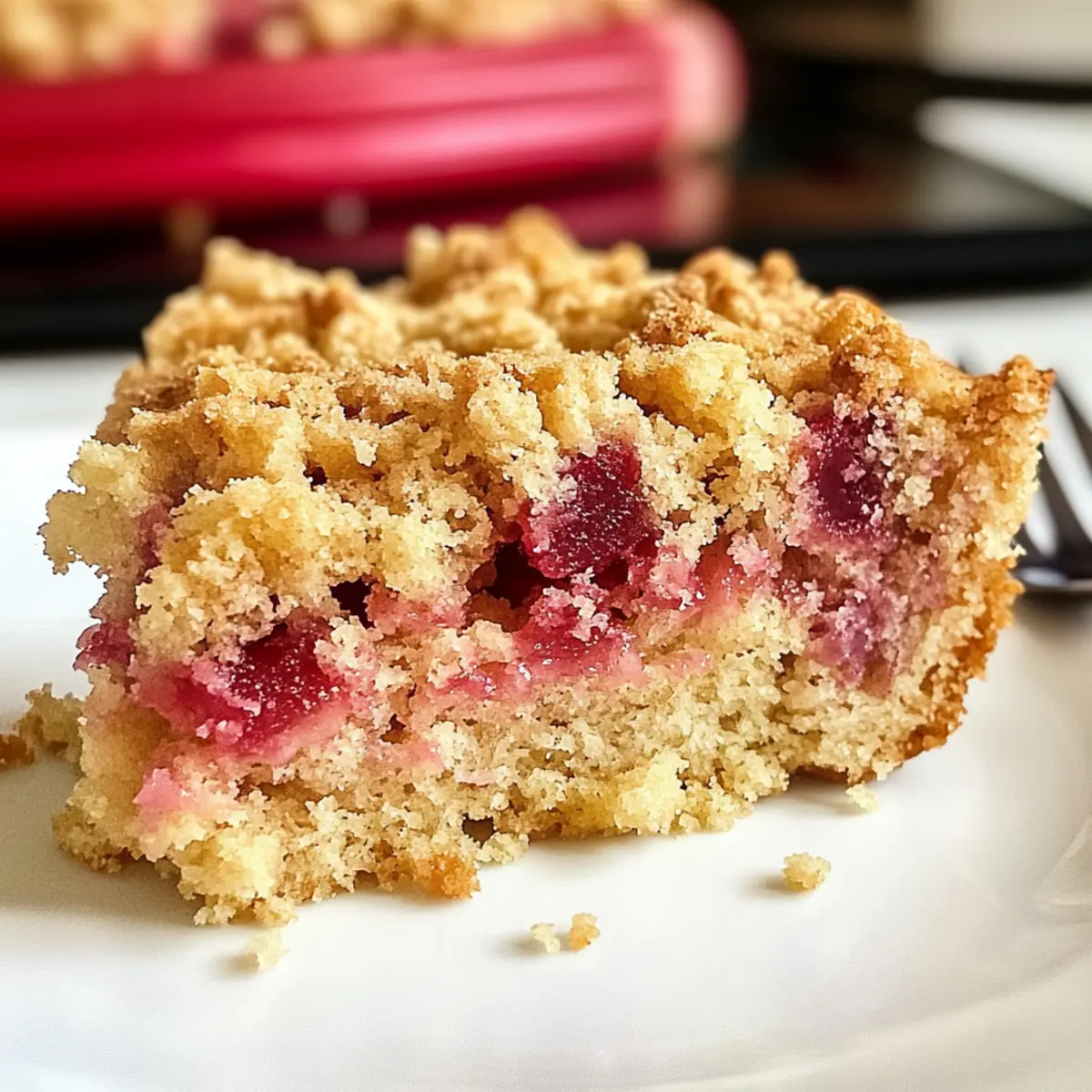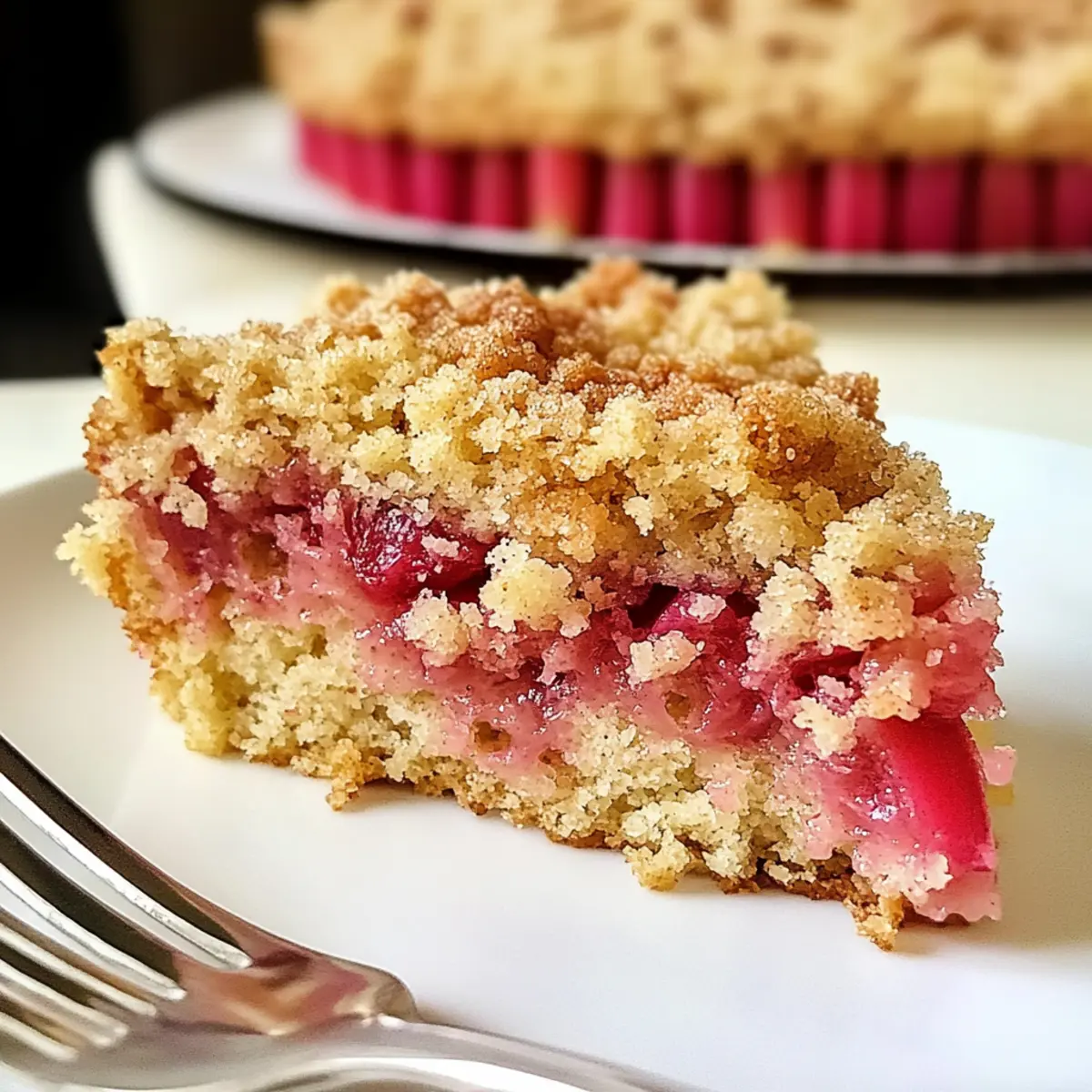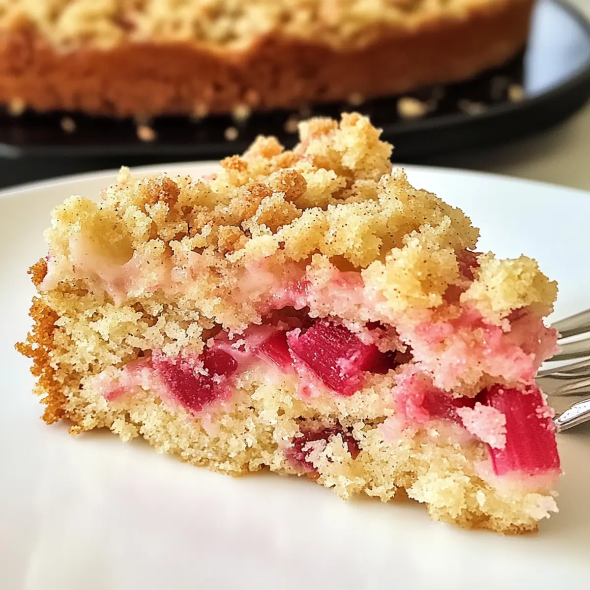 As you slice into the delicious Rhubarb Streusel Cake, the delightful aroma fills the air, inviting all to indulge in the sweetness of spring.