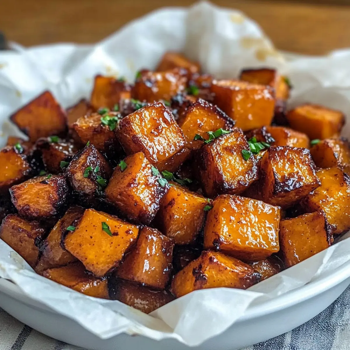 Once roasted to perfection, remove the sweet potatoes from the oven and transfer them to a serving dish. For an extra touch, garnish with a sprinkle of freshly chopped parsley, which adds a pop of color and freshness to your delightful Roasted Sweet Potatoes with Cinnamon & Honey dish before serving warm.