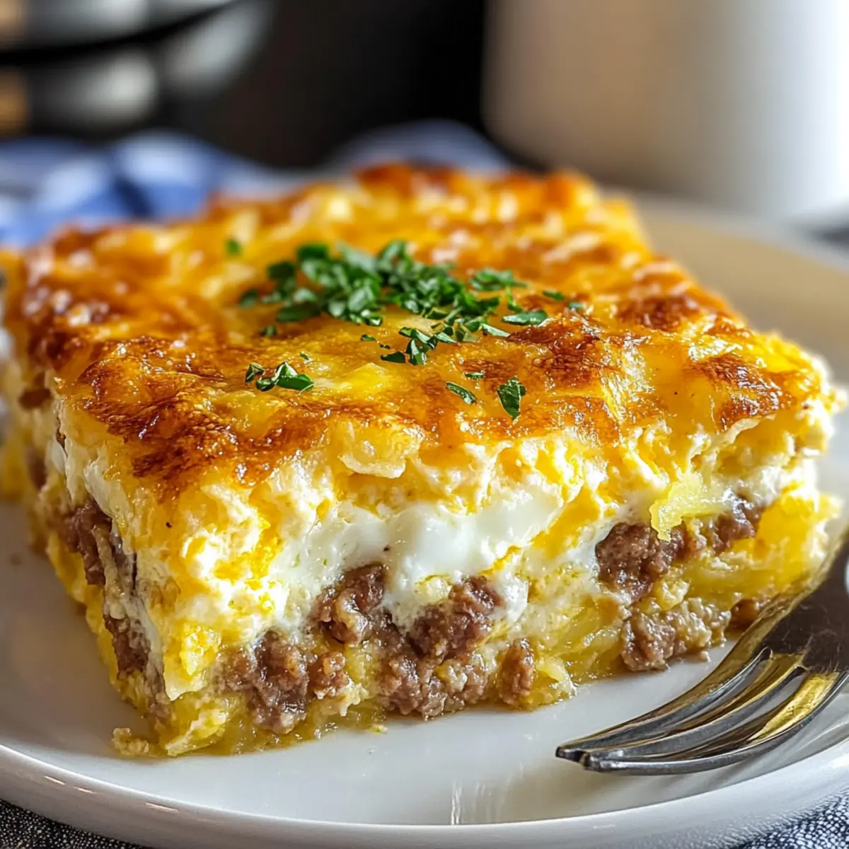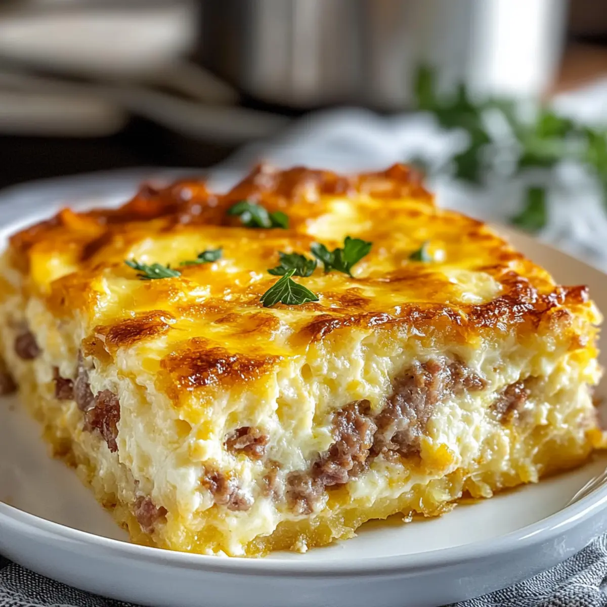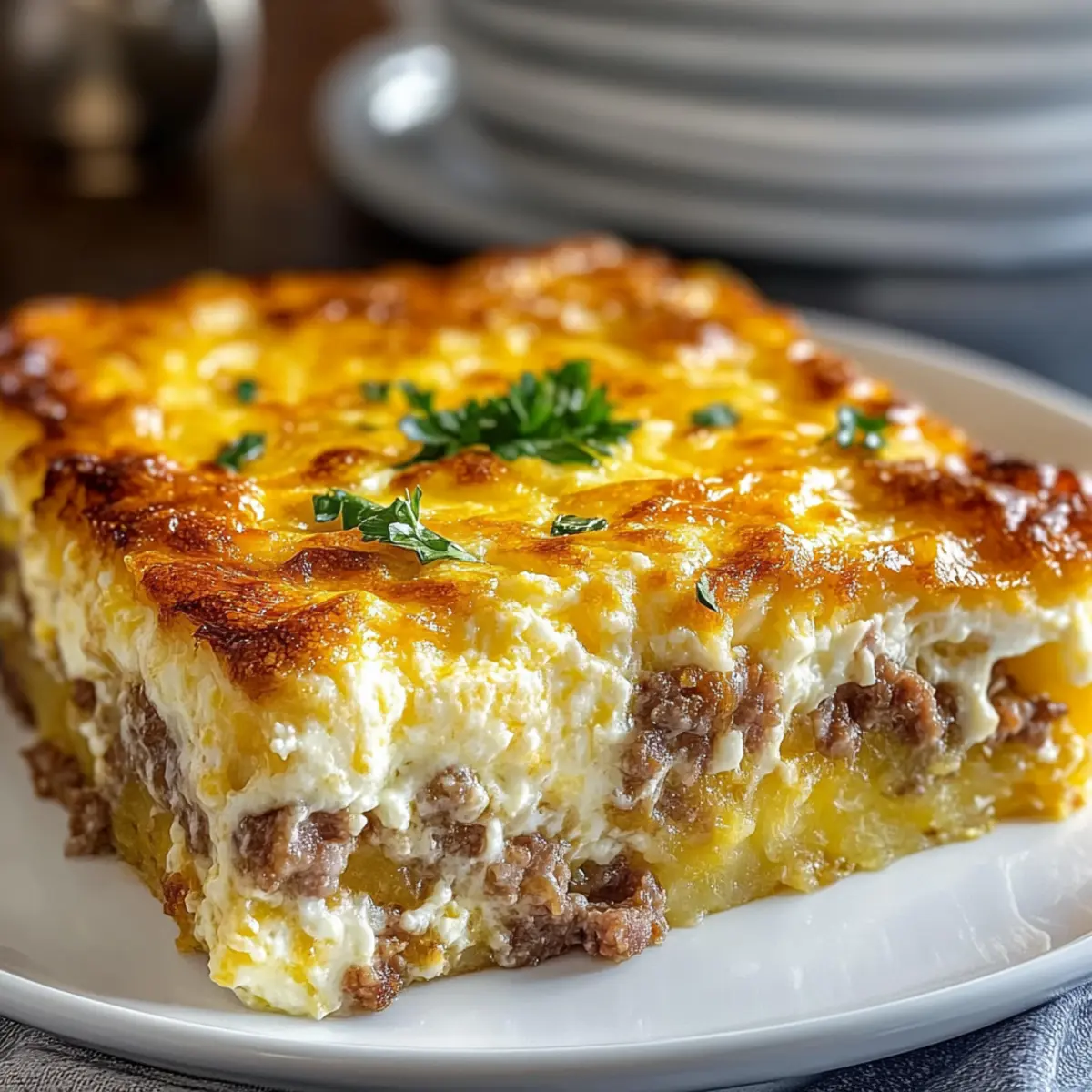 Sausage, Egg, and Cream Cheese Hashbrown Casserole Bliss