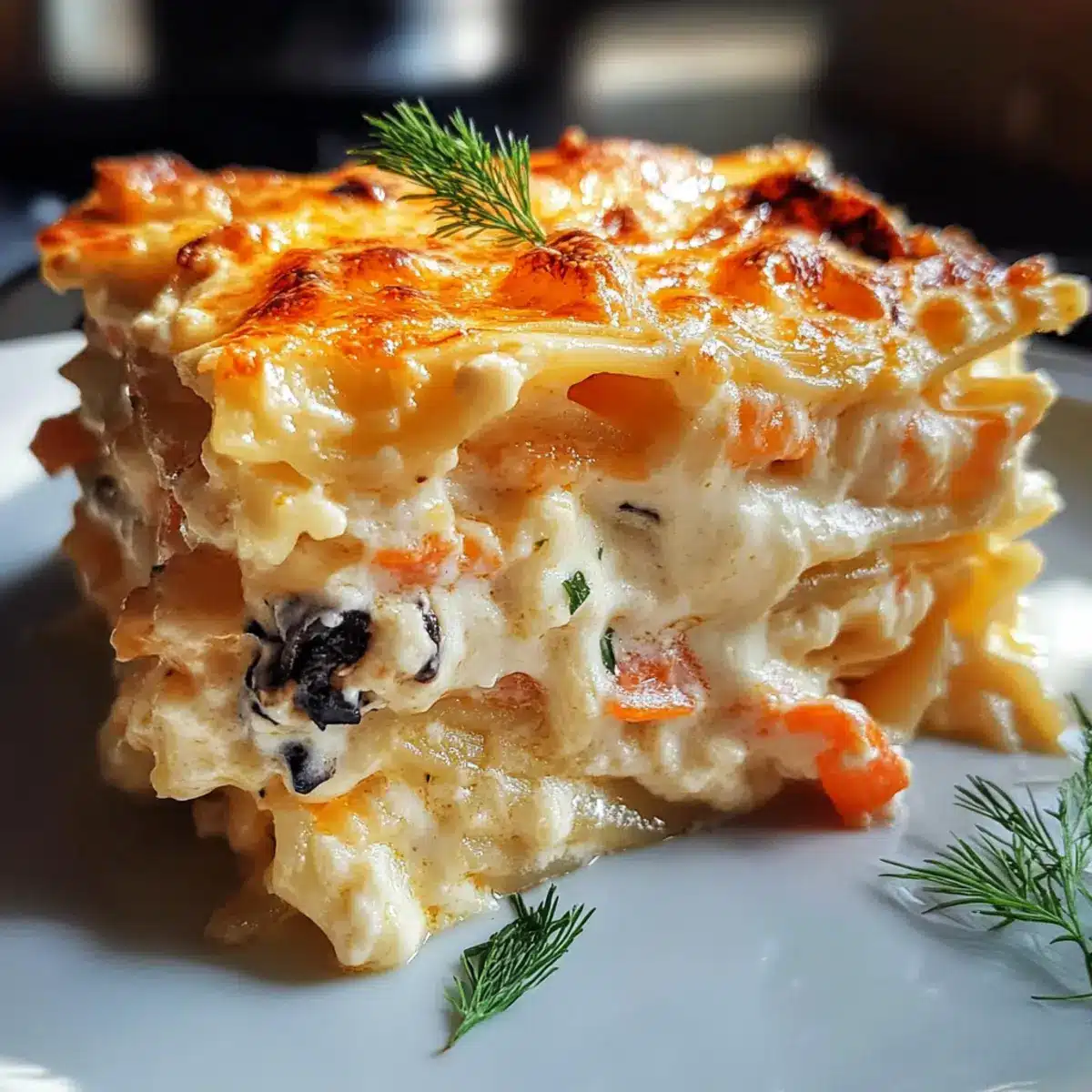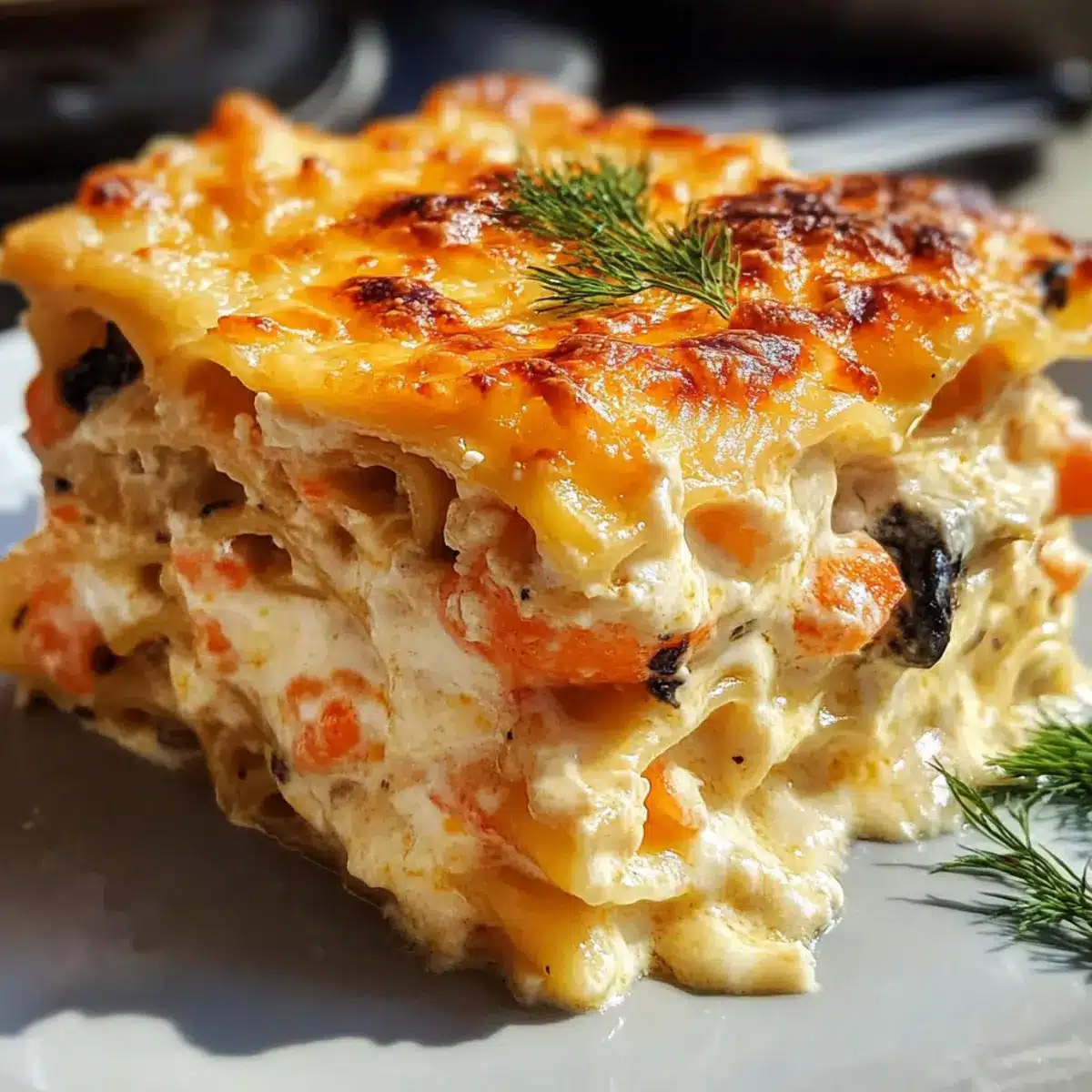 Once baked, allow your seafood lasagna to cool for about 5-10 minutes before slicing. This resting period helps the layers set, making it easier to serve. Enjoy each comforting bite, filled with creamy textures and delicious seafood flavors!
