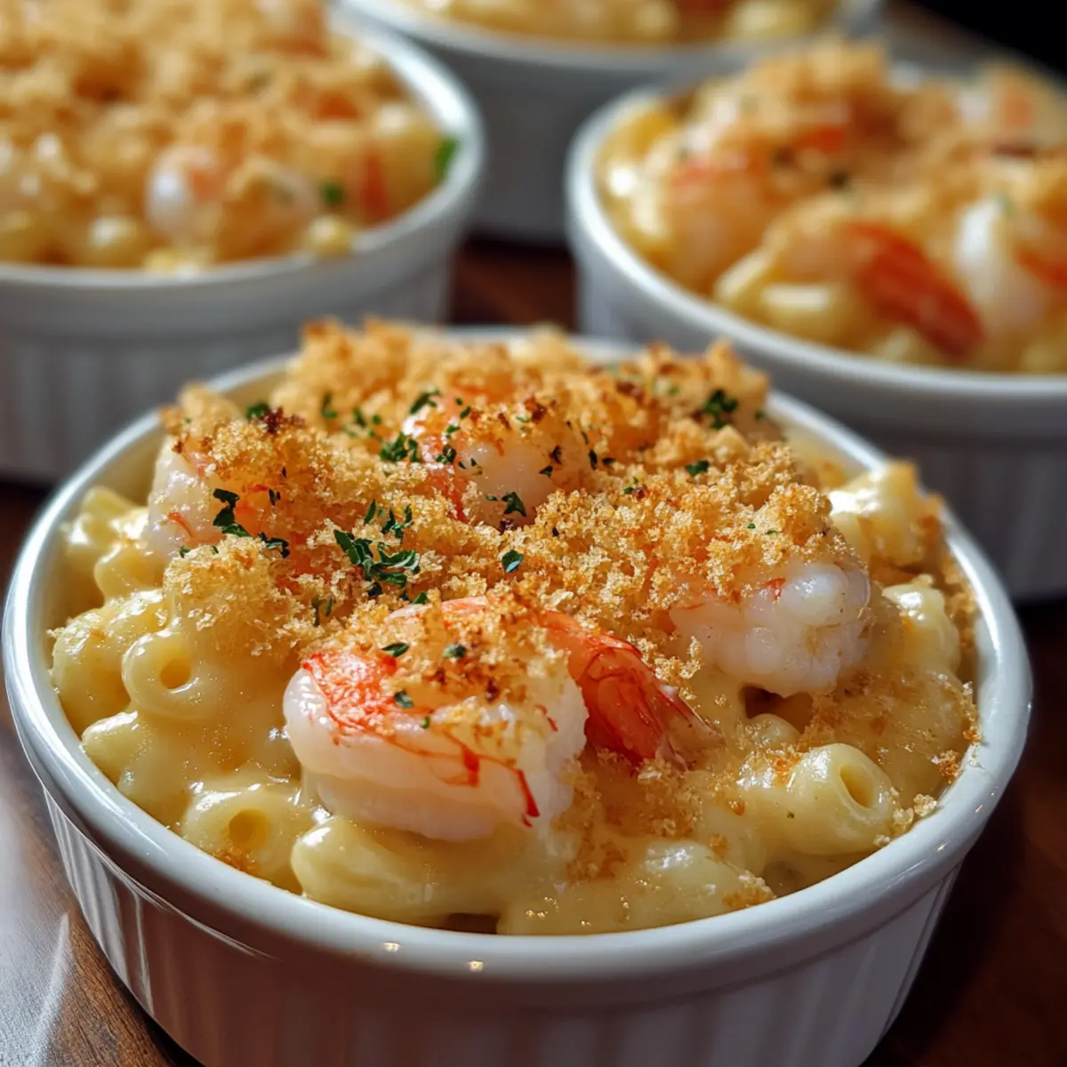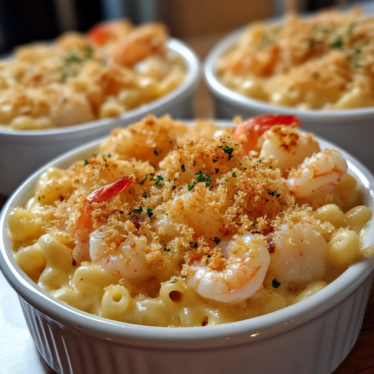 In a small bowl, mix 1 cup of panko breadcrumbs with 2 tablespoons of melted butter. Sprinkle this mixture generously over the Seafood Mac and Cheese for a crispy topping. This added layer will provide a delightful crunch once baked, making your dish even more irresistible.