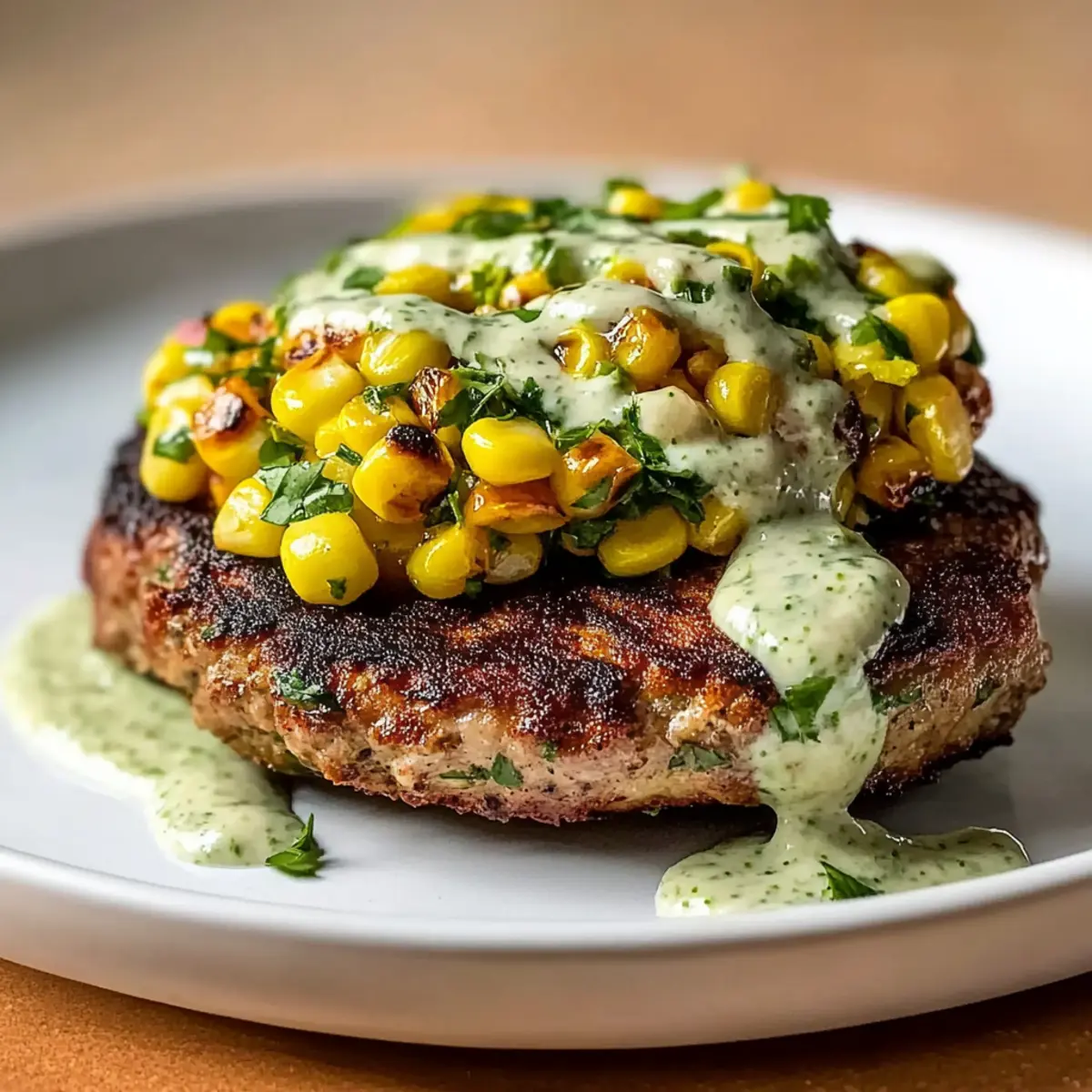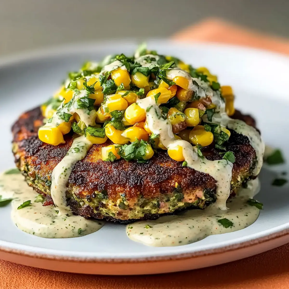 - Plate each patty, drizzle with the cilantro-lime sauce, and top with the corn salsa. Serve immediately.