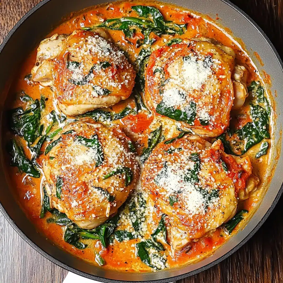 Indulge in Skillet Chicken Thighs with Creamy Tomato Basil Spinach Sauce