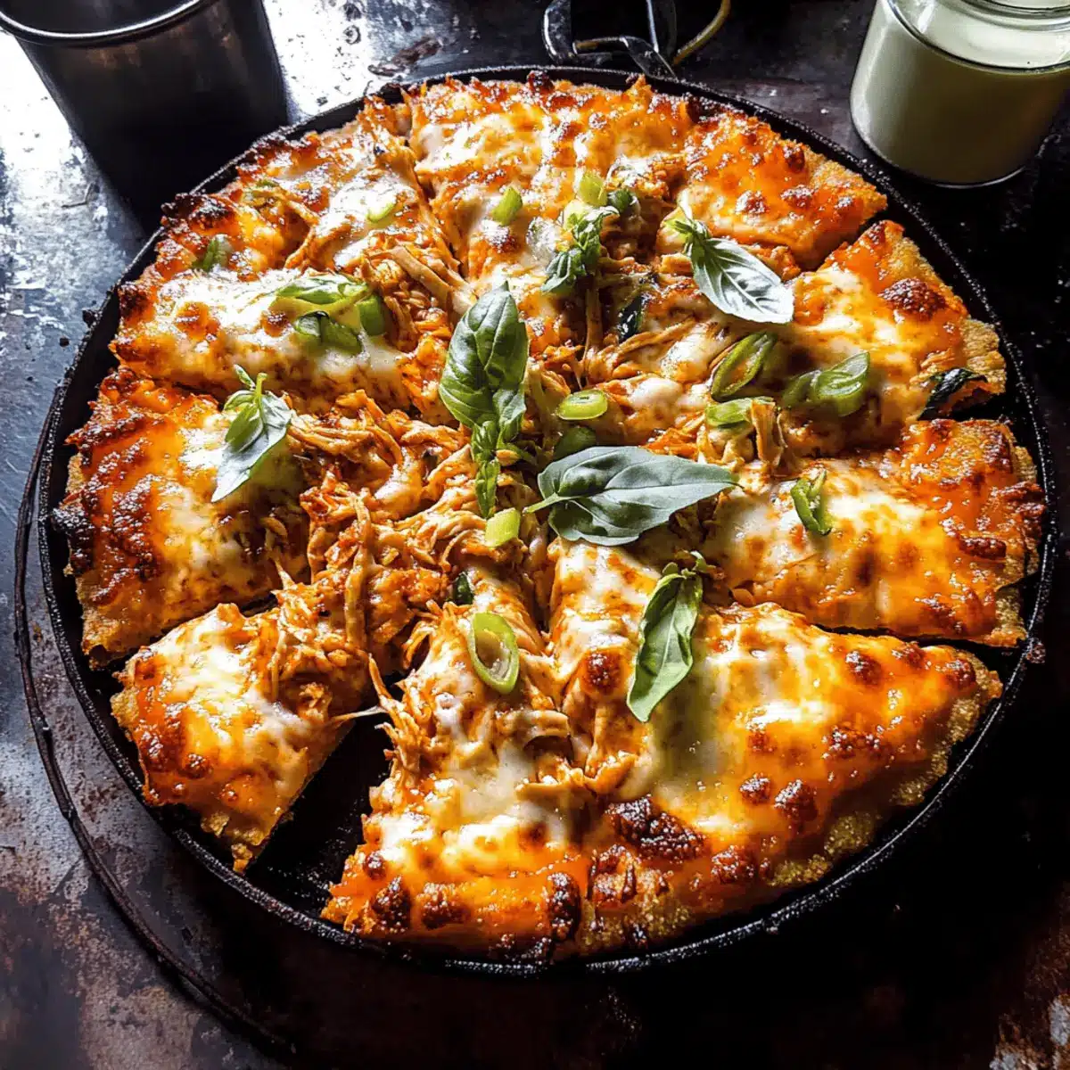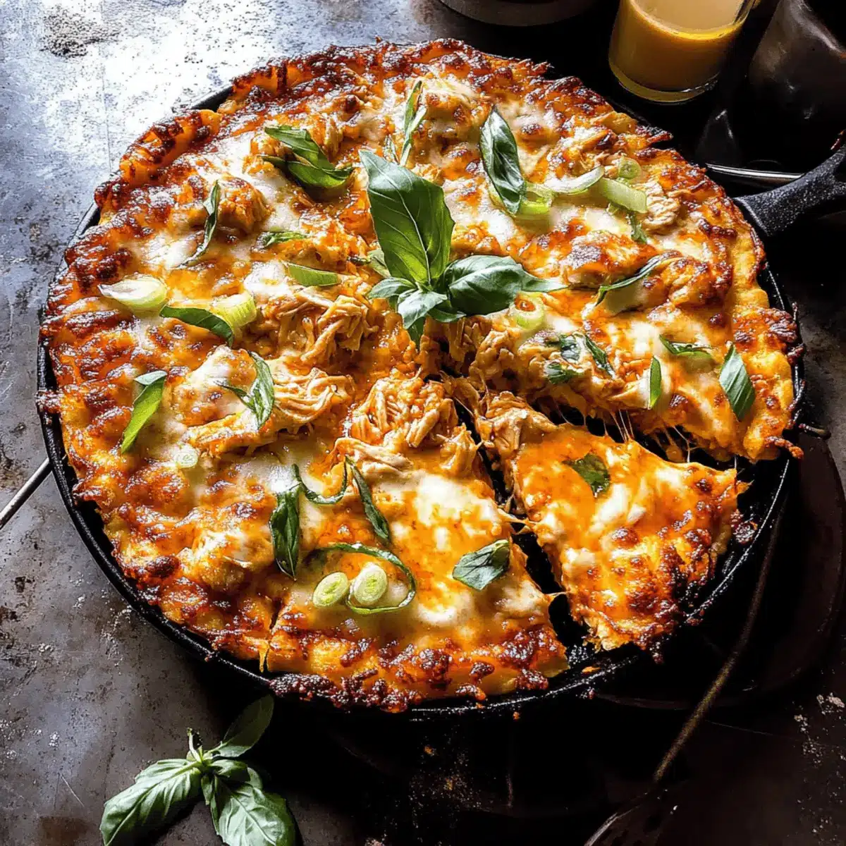 Skillet Crispy Cheese Buffalo Chicken Pizza for Cozy Nights