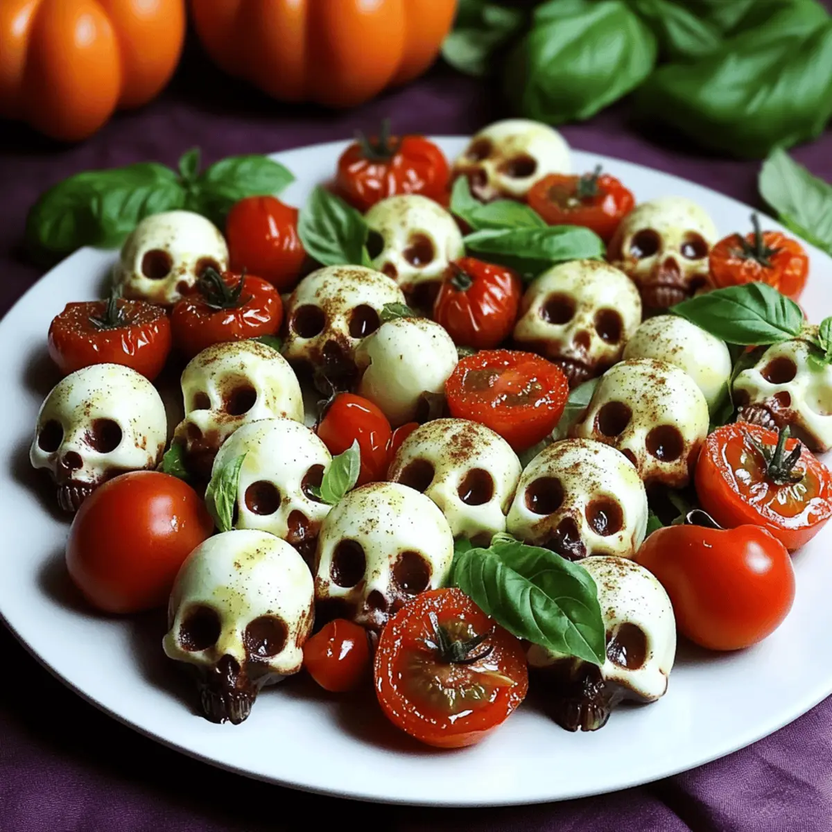 As I was arranging my Halloween spread last year, a spark of inspiration hit me while I shaped mozzarella into little skulls. The idea of a Spooky Skull Caprese Salad was born—a whimsical twist on a classic dish! This Skull Caprese Salad Delight combines creamy skull-shaped mozzarella, juicy cherry tomatoes, and fragrant basil, resulting in a visually striking salad that’s not only festive but also caters to vegetarian, low-carb, and gluten-free diets. In just 21 minutes, you can create this quick masterpiece that will impress your guests and be the talk of any gathering. Could there be a funnier way to celebrate Halloween while enjoying a fresh and delicious meal? Let’s dive into the recipe and craft this playful delight together!