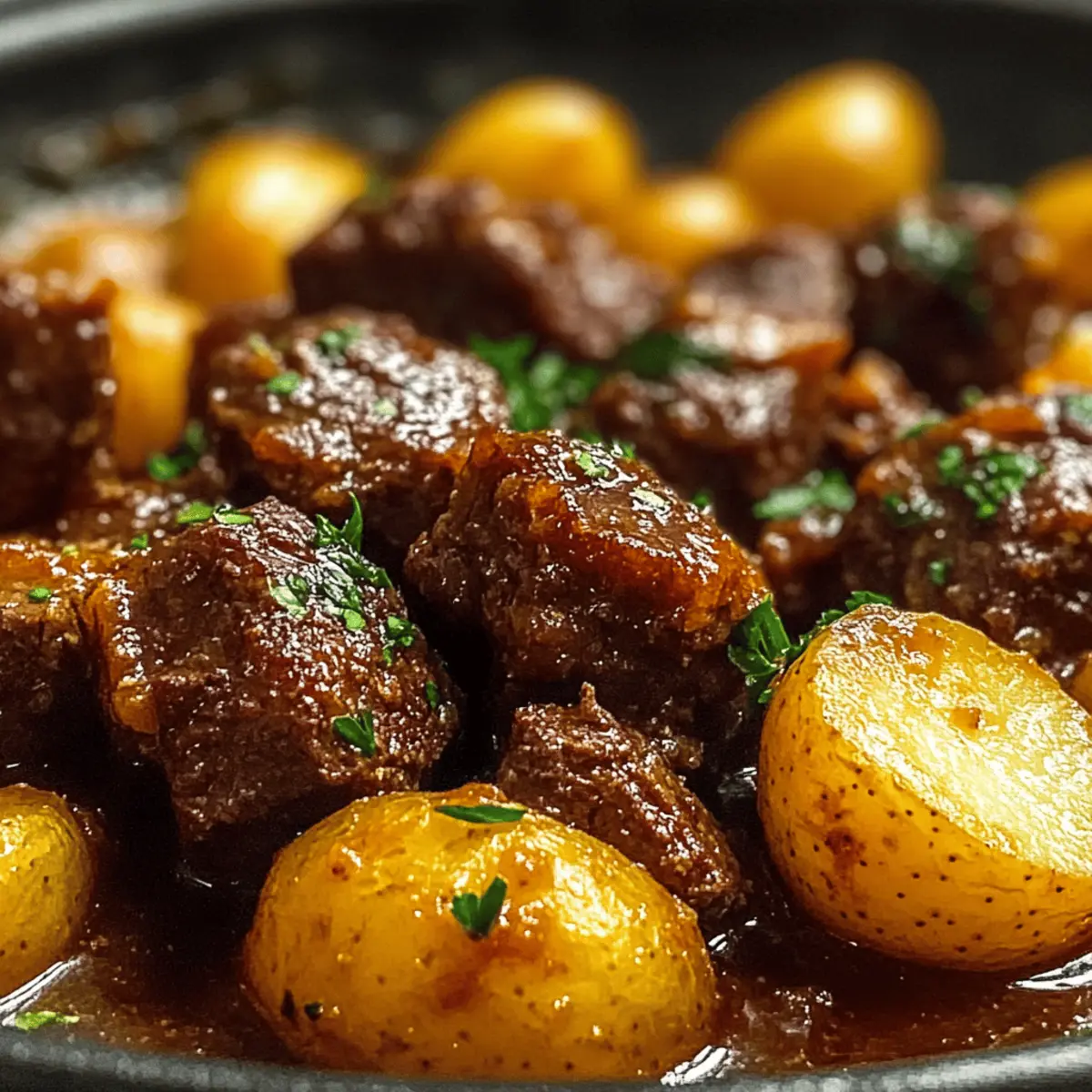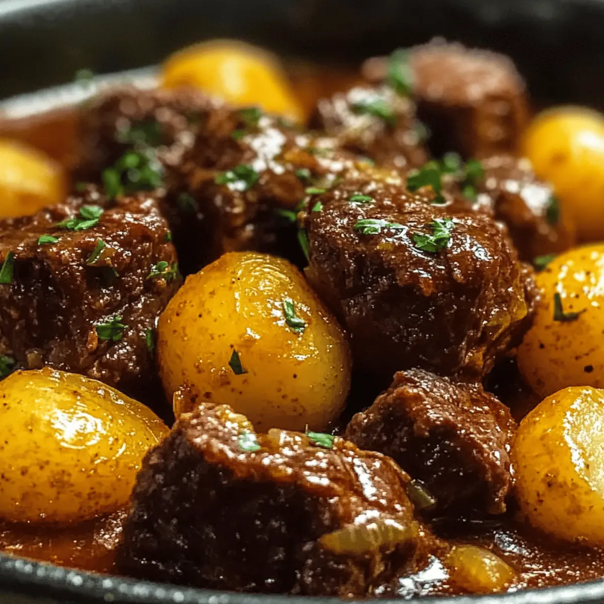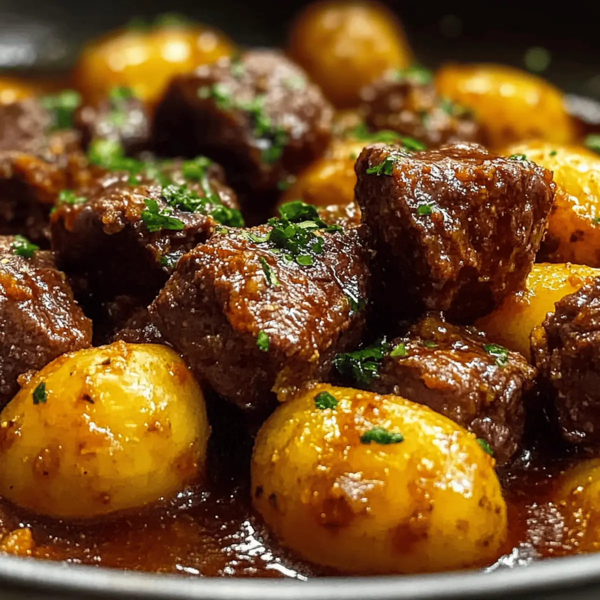 Ladle the beef bites and potatoes into bowls, and garnish with freshly chopped parsley for a pop of color and freshness. This final touch not only enhances presentation but also adds a lovely herbaceous note to enjoy with each bite.