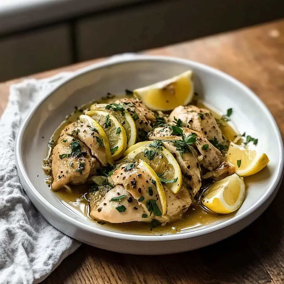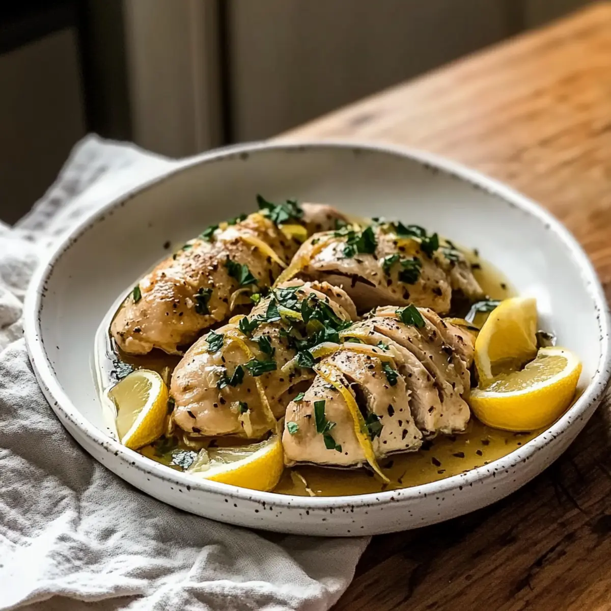 Enjoy the flavors of Slow Cooker Lemon Herb Chicken with tender chicken and zesty broth for a delightful dinner.