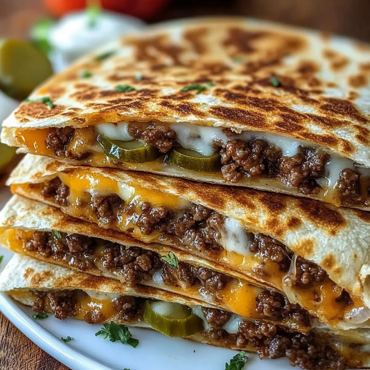 Kid-Friendly Fun: With their familiar cheeseburger flavors, these quesadillas turn dinner into a playful experience that children love. Quick and Easy: Ready in just under 30 minutes, this recipe is perfect for busy weeknights when you need a fast meal. Crispy Perfection: The golden-brown exterior offers that satisfying crunch, while the gooey cheese and savory beef provide a delightful contrast. Versatile Options: Feel free to swap in different proteins or cheeses, making each meal uniquely yours. Clean Plate Guarantee: Even picky eaters can’t resist these! Give them a try and watch as everyone asks for seconds.