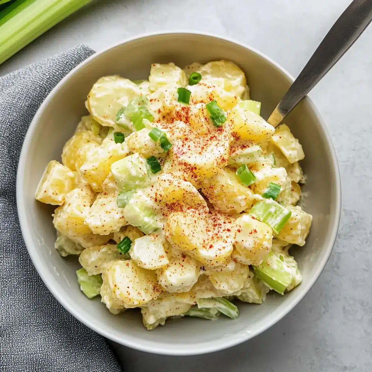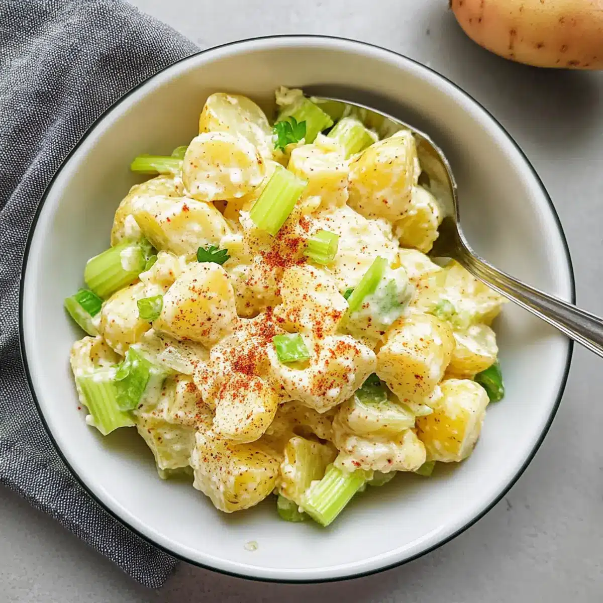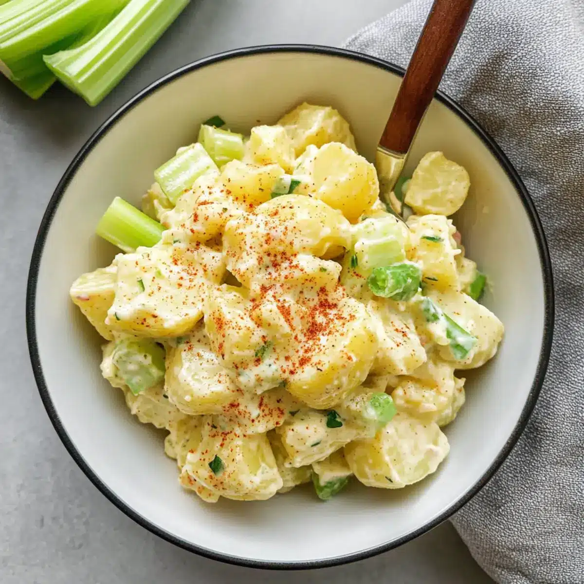 If you find that your potatoes have become mushy, don’t worry! For the best results next time, ensure you boil them only until fork-tender—about 15 to 20 minutes for most varieties. To salvage a mushy salad, try incorporating a bit more chopped vegetables or even adding some diced pickles or crispy nuts to help reintroduce some texture.