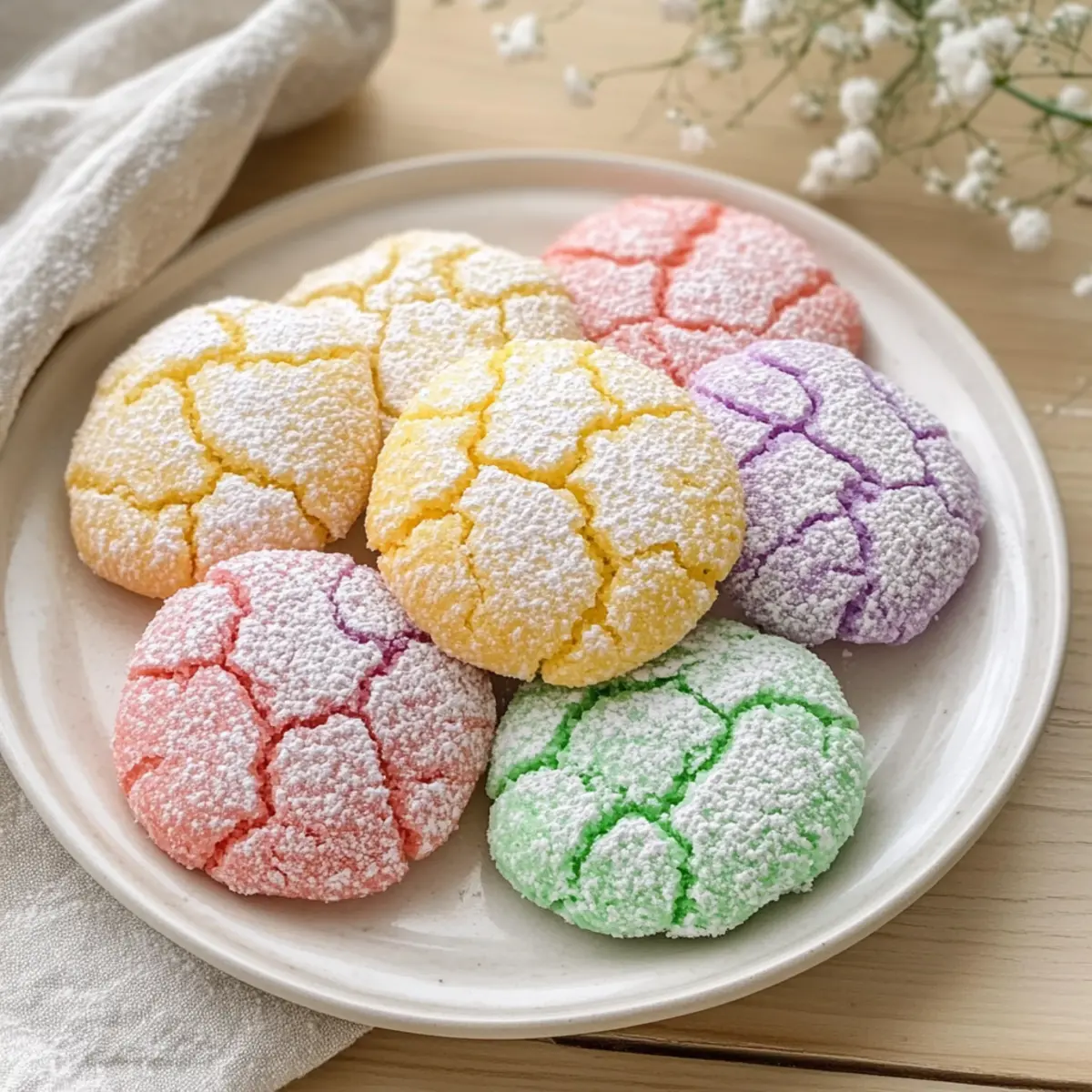 Cocoa Crinkle Cookies: Swap some flour for cocoa powder to create a chocolaty version. This hearty twist gives a rich depth while still showcasing those charming pastel cracks.