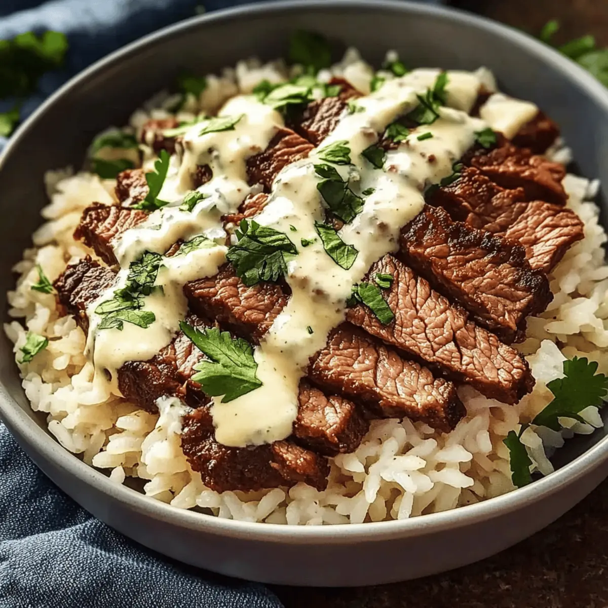 - Take your cooked white rice, which can also be flavored with chicken broth for extra depth, and place it in wide bowls. Layer the seared steak strips generously over the rice, allowing the juices to mingle. Drizzle the warm queso sauce liberally over the steak and rice.