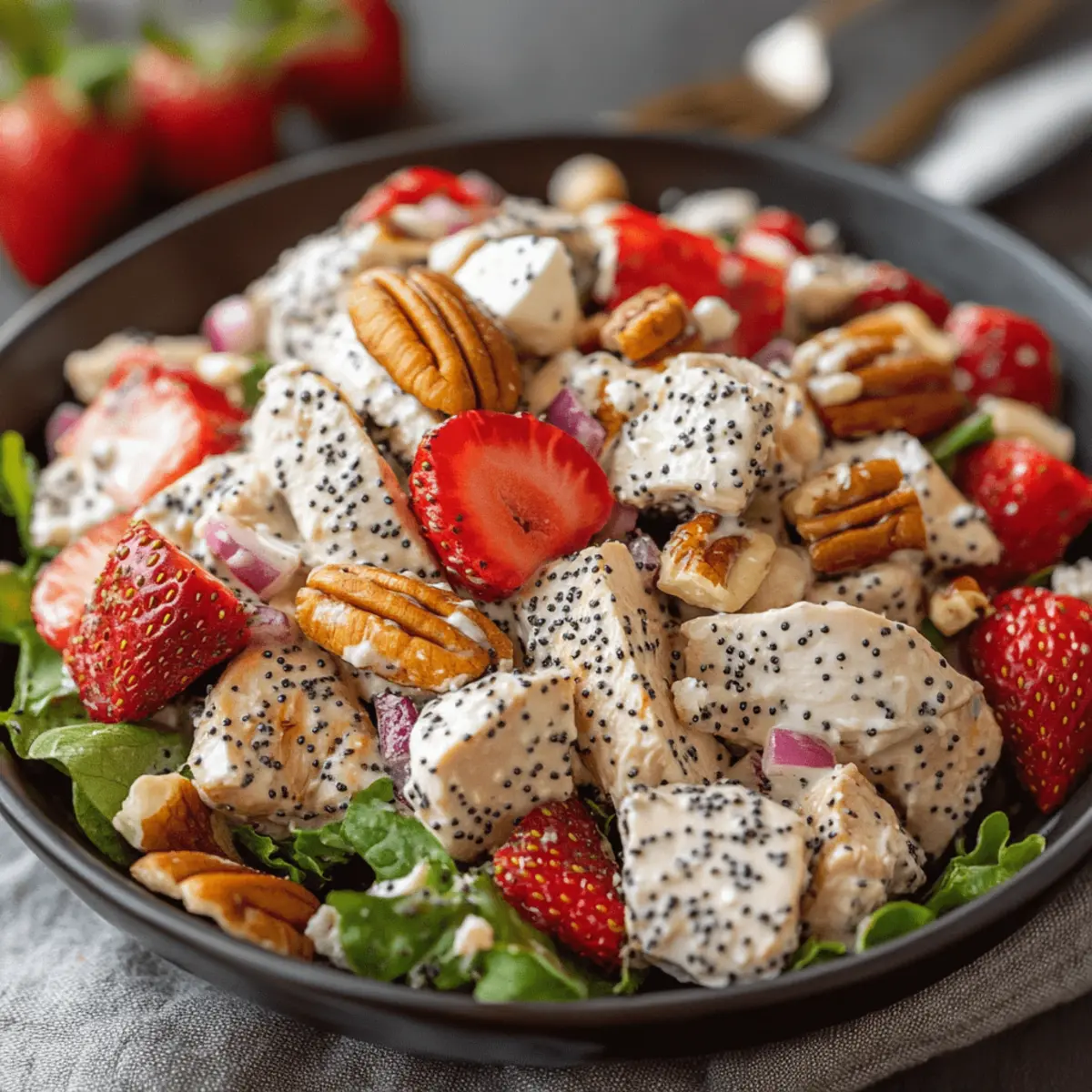 • Crunch Factor: Toast your pecans or walnuts lightly for added flavor. Just a few minutes in a dry skillet can elevate the nutty essence of the Strawberry Poppyseed Chicken Salad.