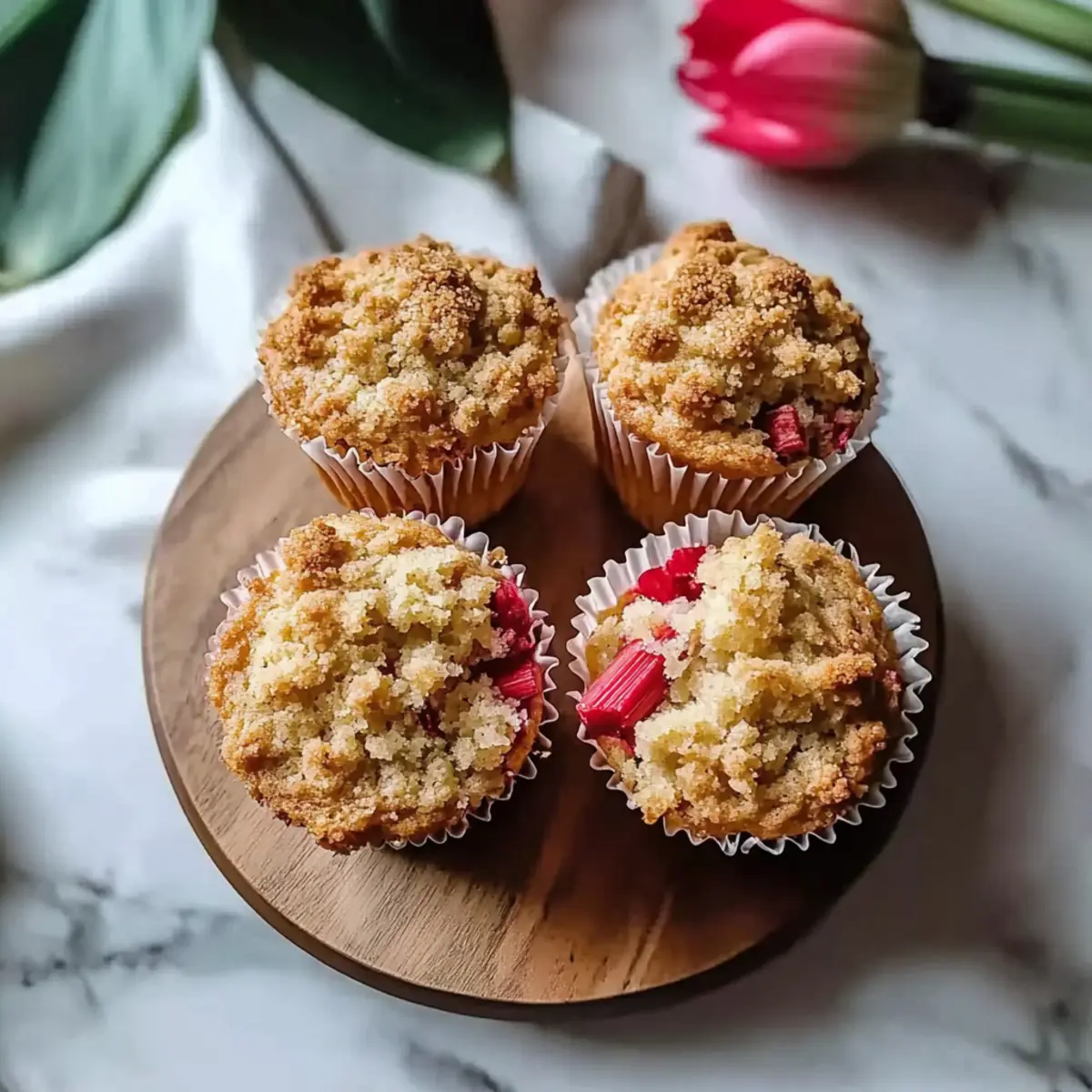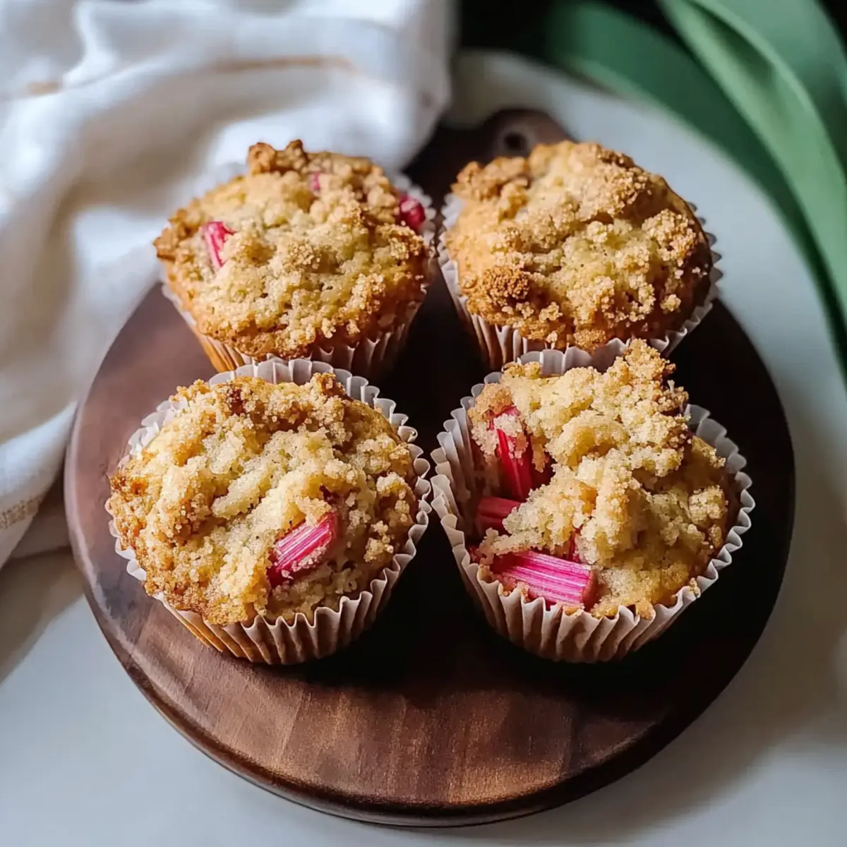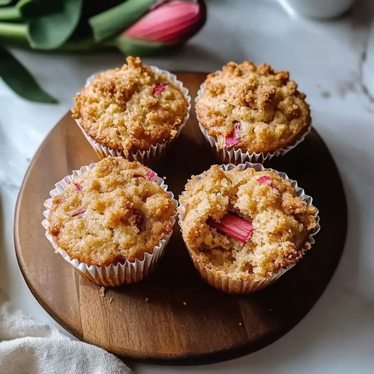Coating Rhubarb: Always toss your rhubarb in flour before folding it into the batter; this prevents it from sinking, ensuring each muffin is perfectly balanced.
