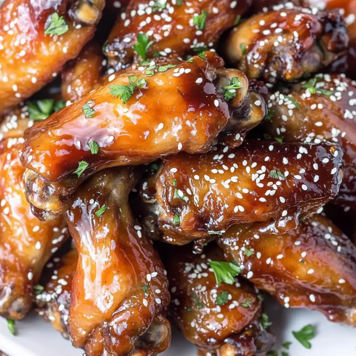 Pour the thickened teriyaki sauce back over the chicken wings in the slow cooker, gently stirring to ensure every wing is coated. Garnish with a sprinkle of white sesame seeds and freshly chopped parsley for a pop of color. Serve these Easy Slow Cooker Teriyaki Chicken Wings warm, inviting family and friends to savor the flavors of this delightful dish.