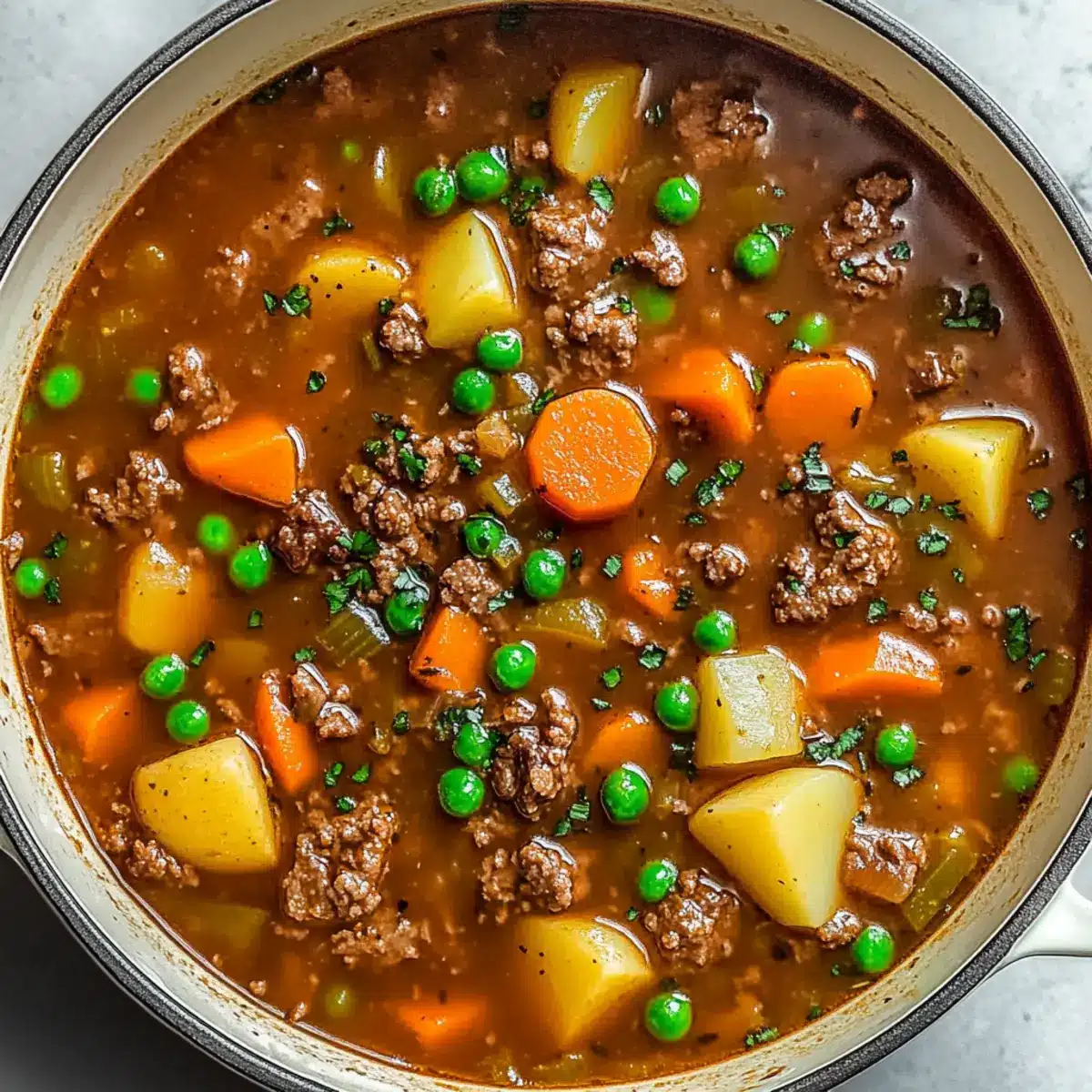 If you’re in the mood for another cozy meal, consider making a comforting Cozy One Pot Seafood Stew that warms and satisfies. Each variation makes this ultimate easy hamburger stew truly your own! Enjoy experimenting in your kitchen!