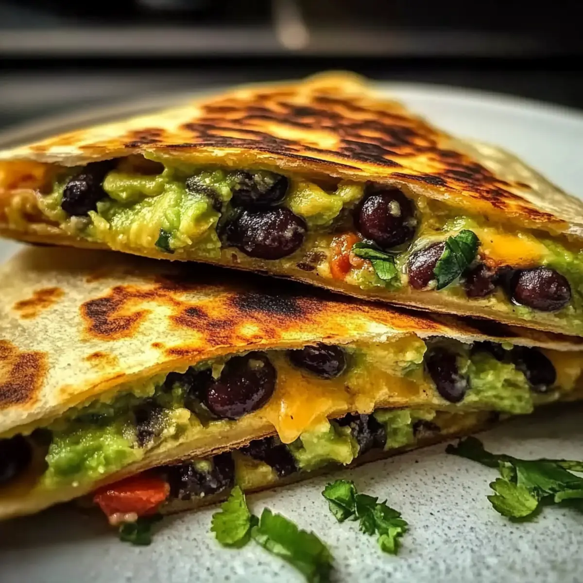 Slice each quesadilla into wedges and serve them immediately while they are warm and crispy. For an extra treat, consider pairing your Vegetarian Avocado & Black Bean Quesadillas with fresh salsa, creamy guacamole, or a light salad. This will add a refreshing contrast that beautifully complements the rich flavors of the quesadilla.
