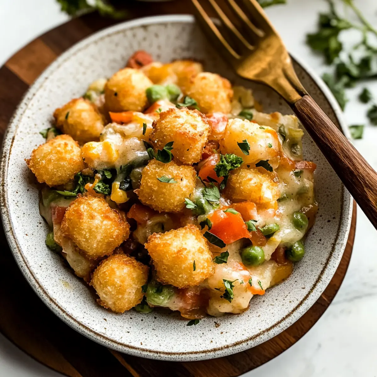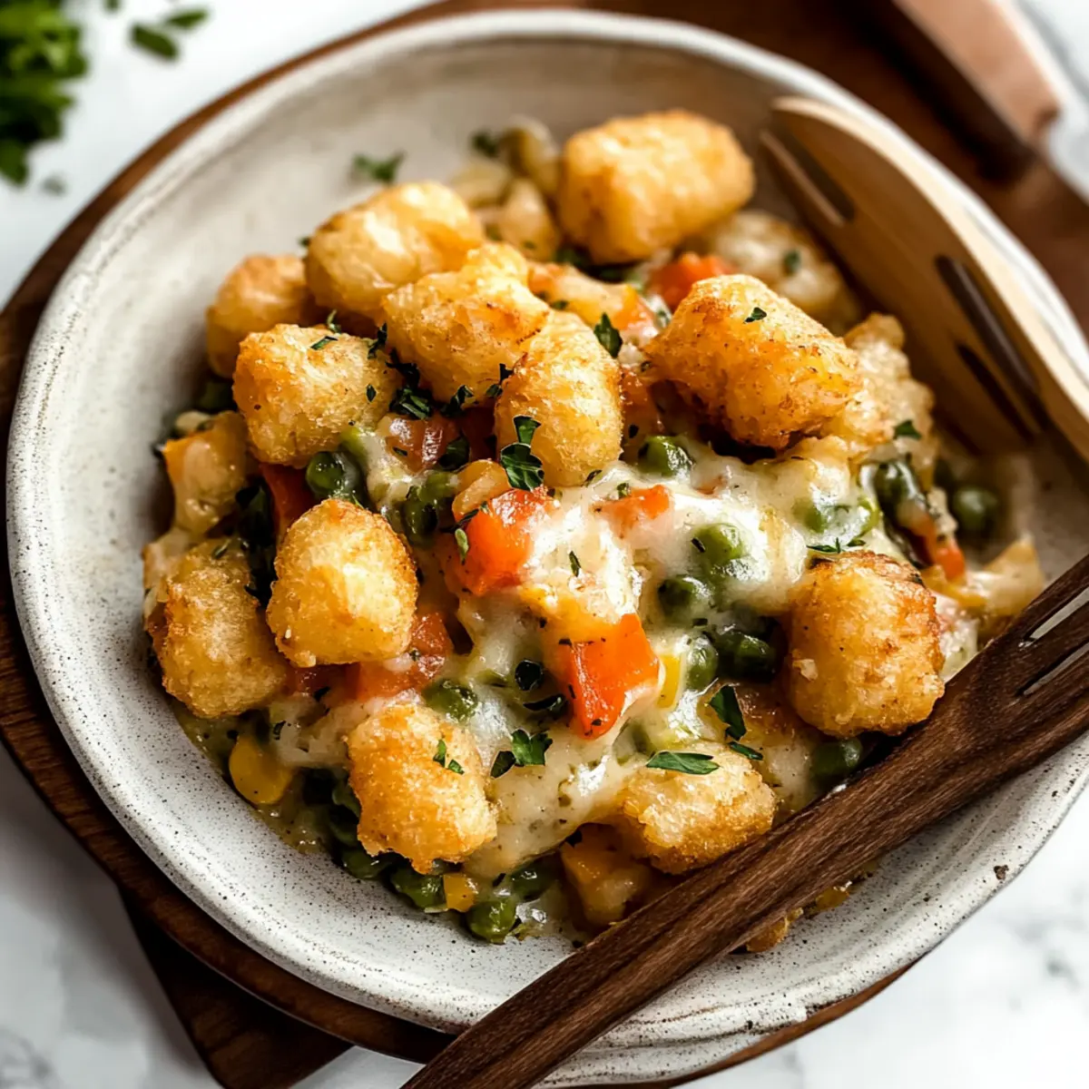 Comforting and nostalgic, this Vegetarian Tater Tot Hotdish embraces the essence of home-cooked meals that warm both the body and soul. Crispy topping meets a creamy filling, creating a delightful contrast that’ll make you come back for seconds. Quick to prepare, it’s perfect for busy weeknights or family gatherings. Versatile enough to adapt with seasonal vegetables or different cheeses, this dish fits any palate. Lastly, it’s a delightful crowd-pleaser that even meat lovers will rave about—your go-to for cozy nights! To elevate your cooking experience, don’t forget to check out my tips on making homemade cream of mushroom soup.